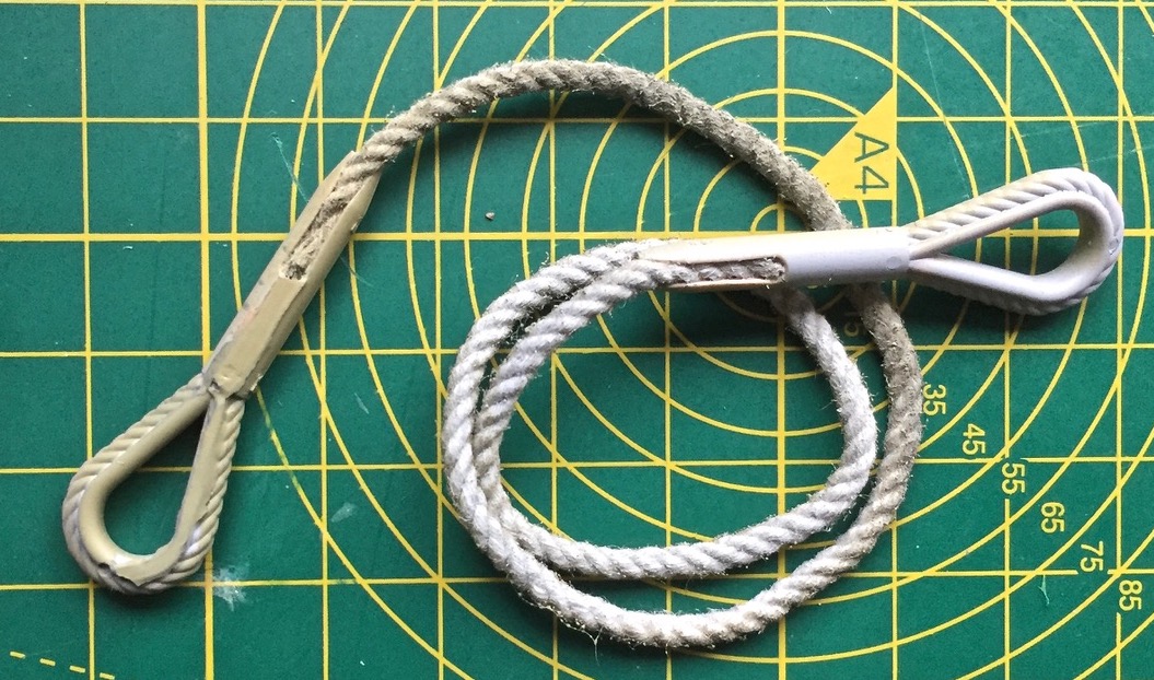 When you buy a Tamiya full-option kit, you'd expect the quality of the contents to match the bank balance busting prices they command. In the main, I'd say they do; but feel the kits are still overpriced. Be that as it may, in every kit you might expect to find some quality two ropes to go with your quality tank. After all, metallic tow ropes/ hawsers are a standard third party accessory upgrade item for most tank enhancers, I'd guess.