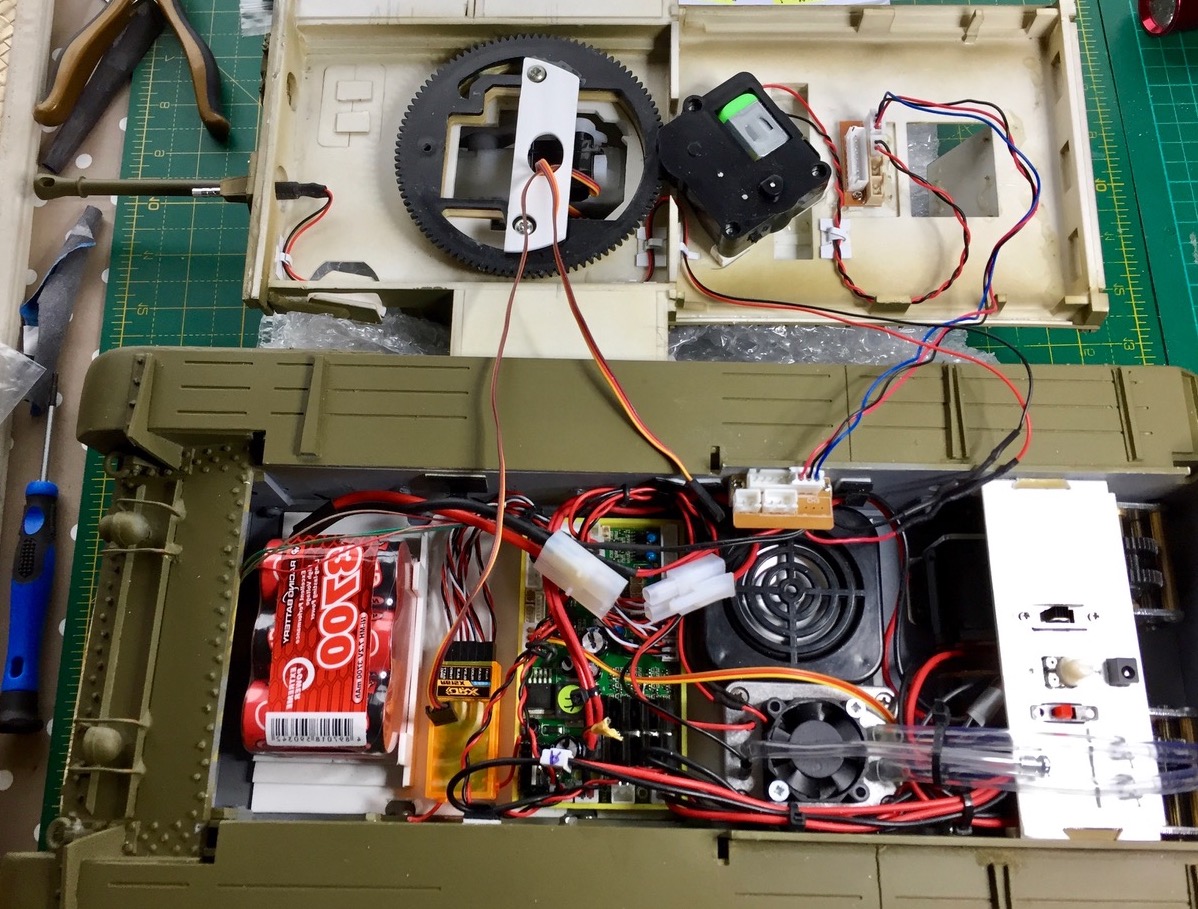 This is what I crammed into my Cromwell project. Twice before, I had to reposition the entire contents (barring motors :/ ) of the lower hull, as they prevented the gun from elevating properly, and also made closing the two halves a real pain.