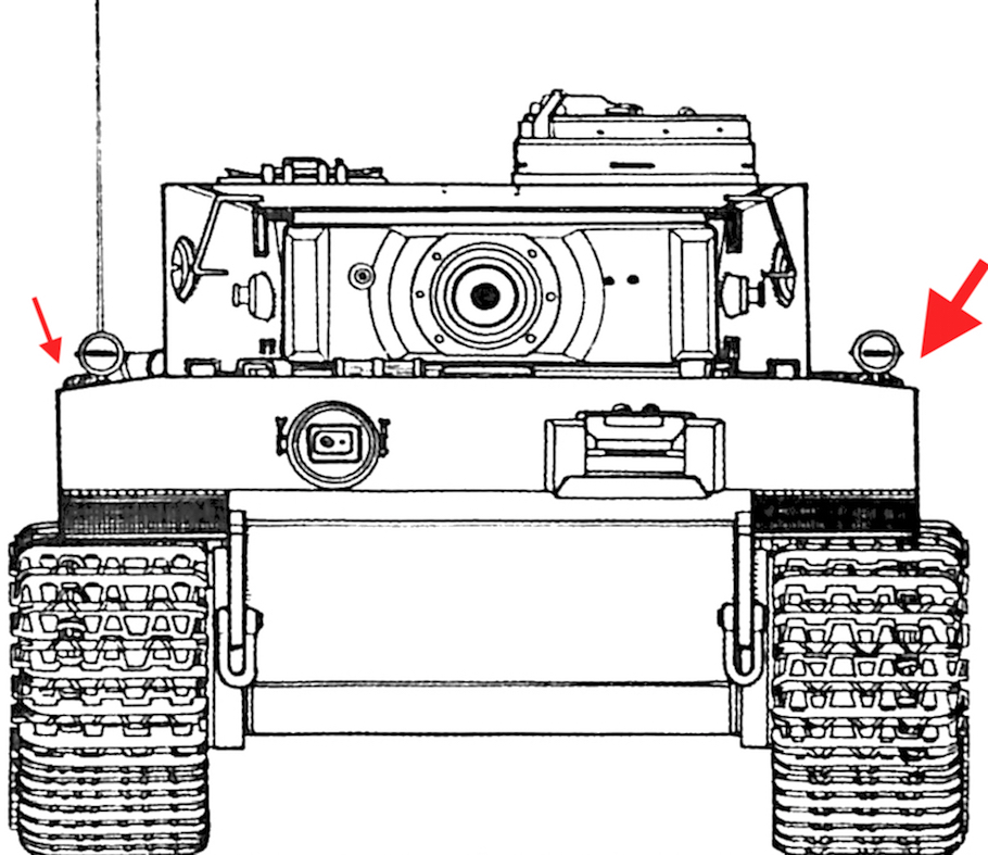 Slopes on Tiger 1's front armour plate just in front of headlights