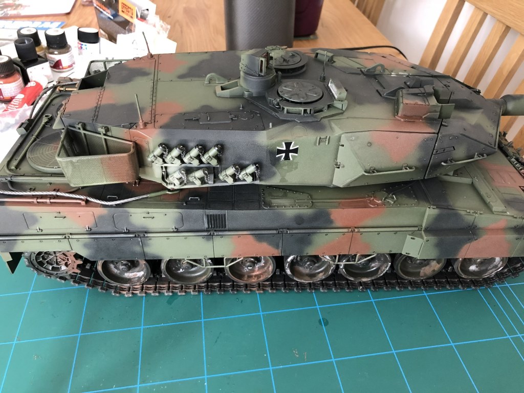 This is a Tamiya Leopard 1:16 for which I purchased an Iwata Airbrush and a compressor, having never used one before. Also required a transmitter with non digital trims and the Futaba