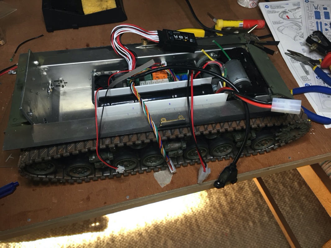 The picture below gives a good impression of the easy-eight project: tracks and lower hull are nearly finished. As all of you can see I am using an IBU3 module in combination with a Taranis X9D radio and X8R receiver(s)
