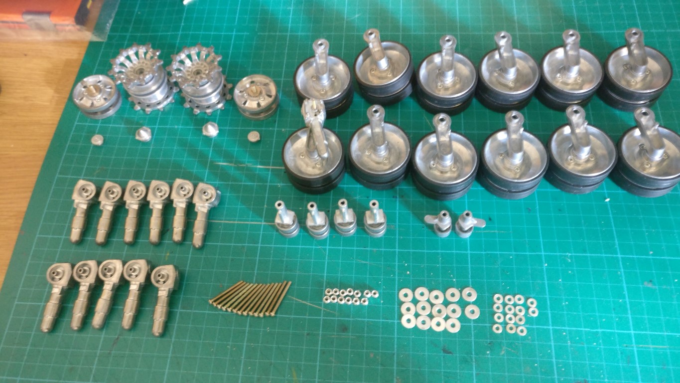 No they seem fine, each wheel has tow stainless steel bearings on the axle...some wobble but seem to spin freely and true...wyvern wrote:Its interesting to see the suspension units being put on and the whole thing coming together. Can I ask, whether the metal wheels have much wobble to them (runout) when spun or do they spin quite true? I only ask as I bought some early wheels for my KV-1 but sent them back and stuck with the plastic ones I had as they wobbled so much.