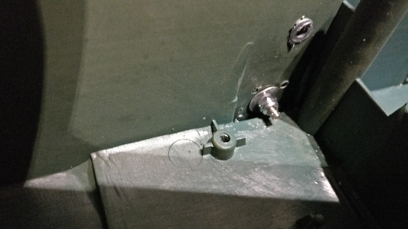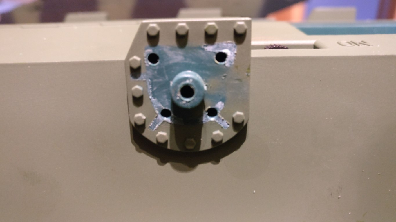 Once you have cleaned up all the surfaces and re-drilled the holes, you'll need to drill out the support holes for the track support rollers with a 6mm drill. Do this by hand as the plastic is very soft and excessive heat will just melt the surrounding area. Test fit the new metal suspension arms and drill through so that the attachment bolts come through into the inside of the hull. Make sure you have 12 x 2.5x50 Bolts and the same of nyloc nuts (mine had 14 so expect extras) I test fitted one complete wheel and suspension assembly.. Here you can also see another addition, its the axle support assembly from Legion (via ForgeBear) it looks like you could fit this to the inside of the hull, but it makes refitting the gearboxes really difficult.