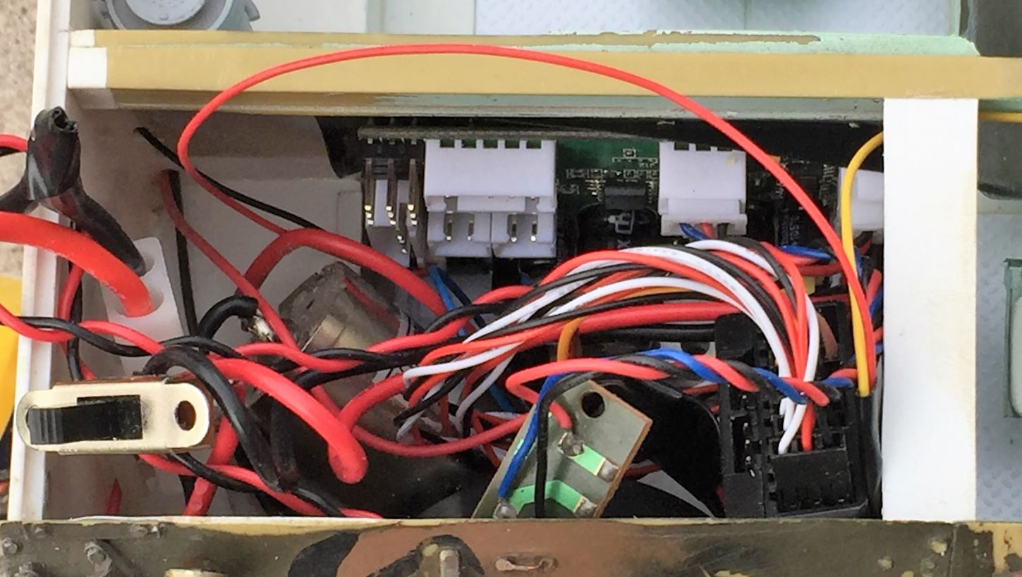 TK-22 control board is fitting against the engine bulkhead, Flysky receiver on the right.