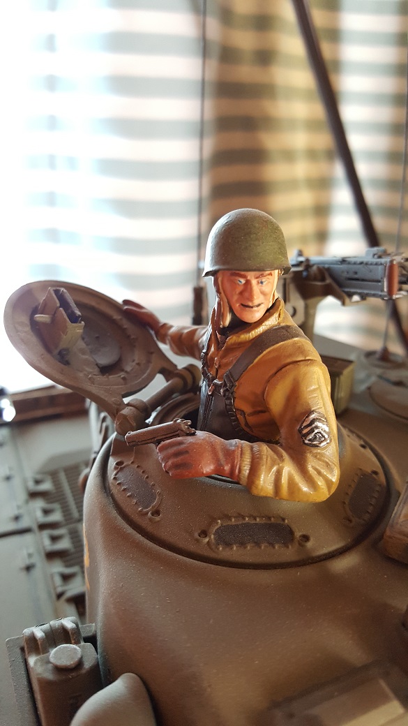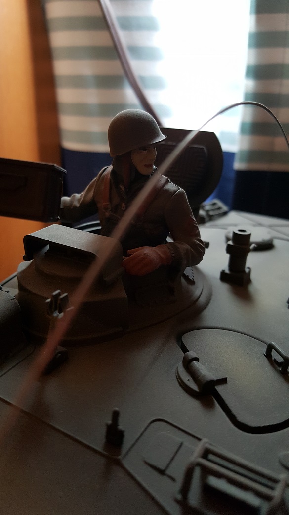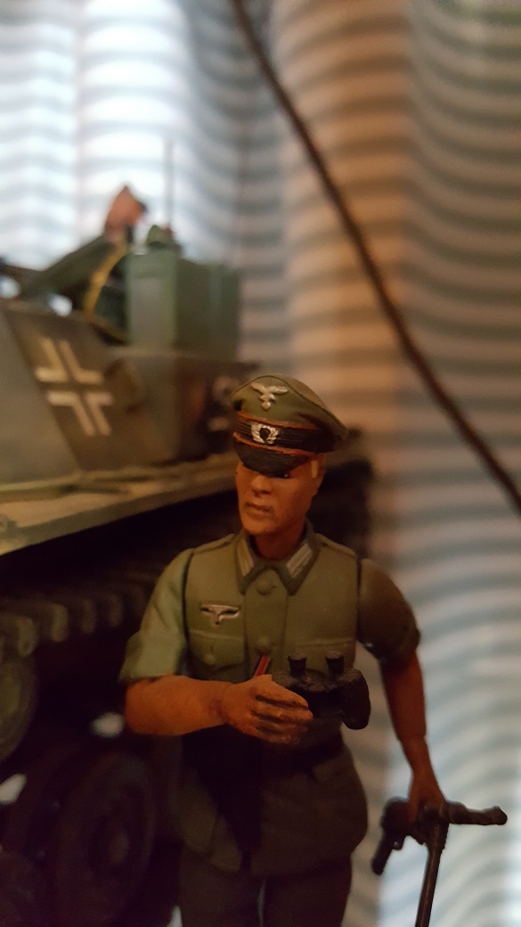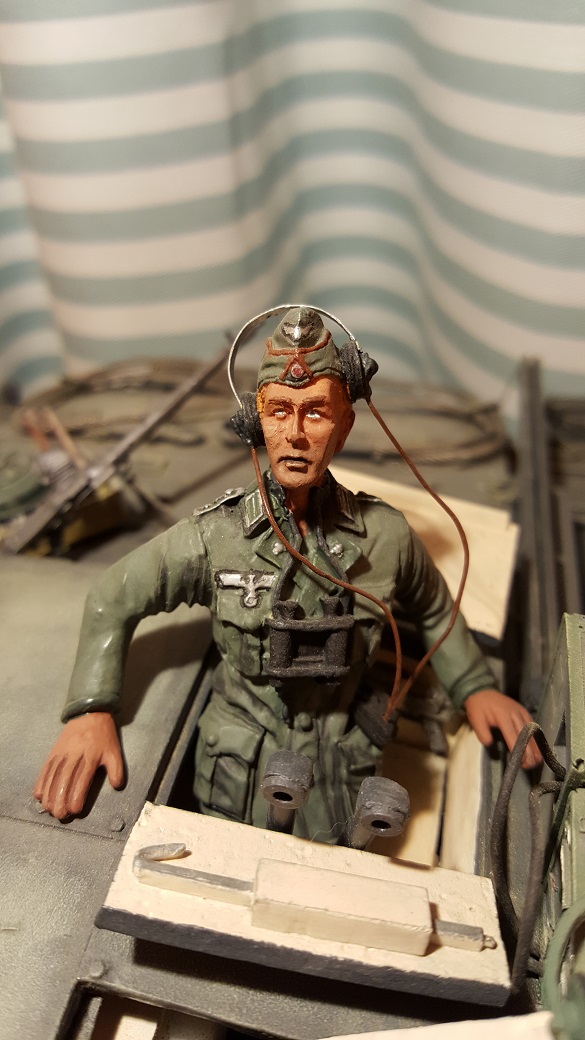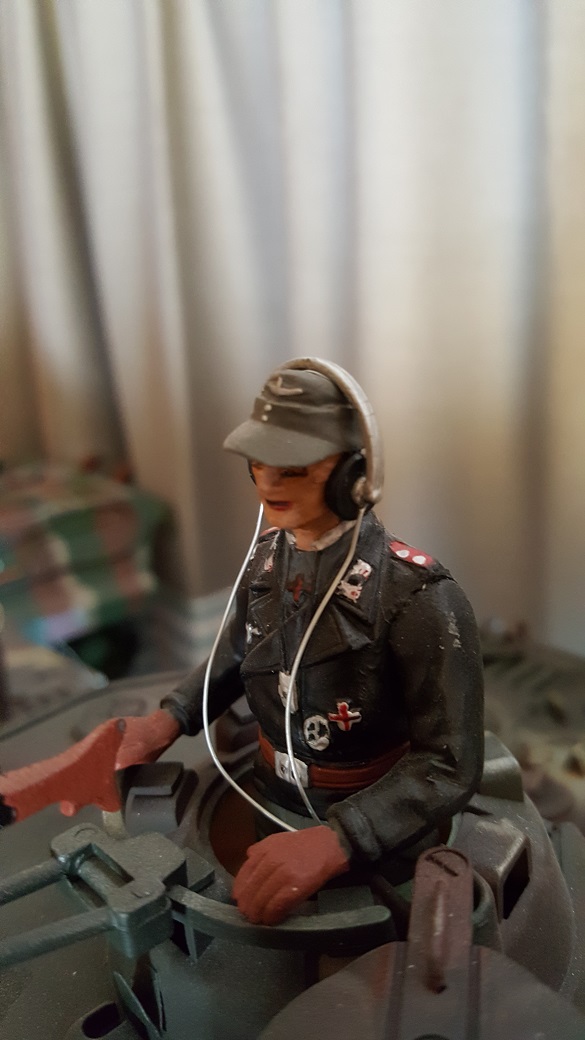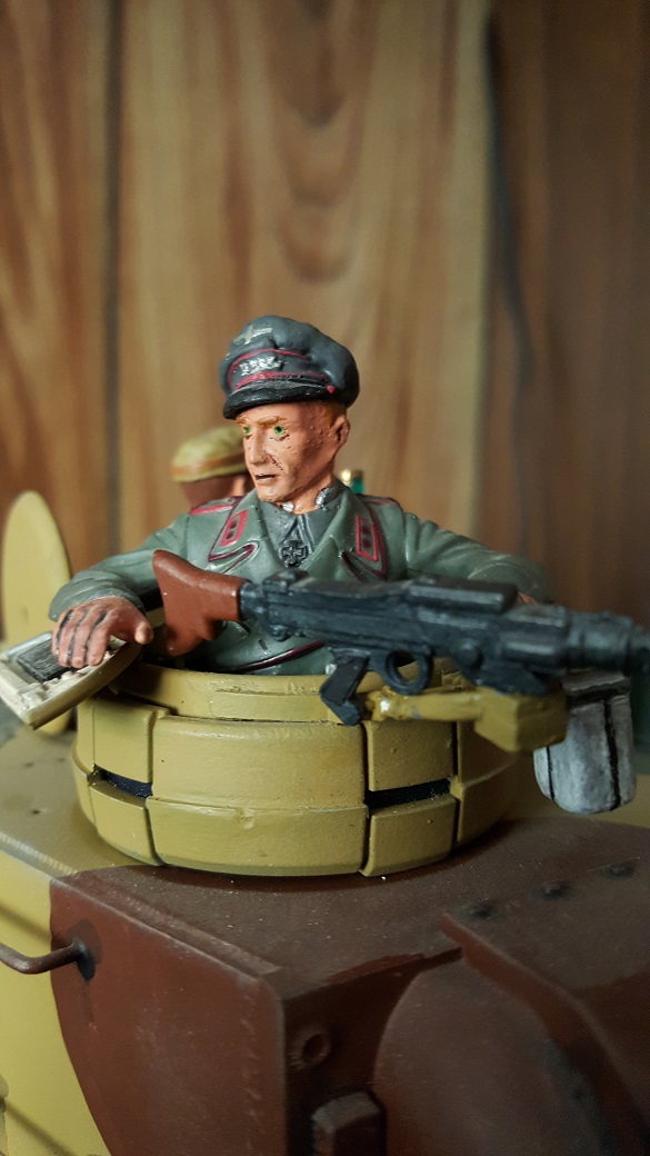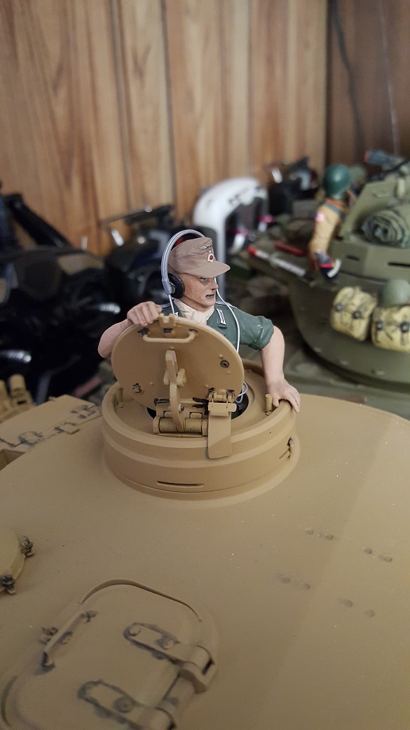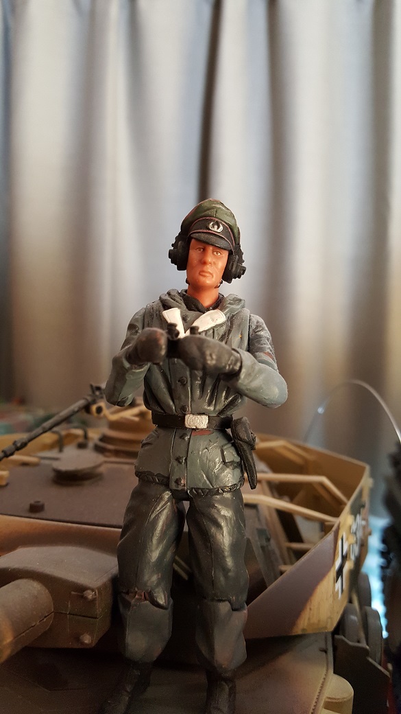 You mean the King Tiger Commander? That poor figure was so messed up that even after a lot of sanding and trimming, he still ended up looking like he had survived a brew up. I may revisit him with a better uniform and paint when I redo that tank. I've learned a few tricks since then that may make him look more human.