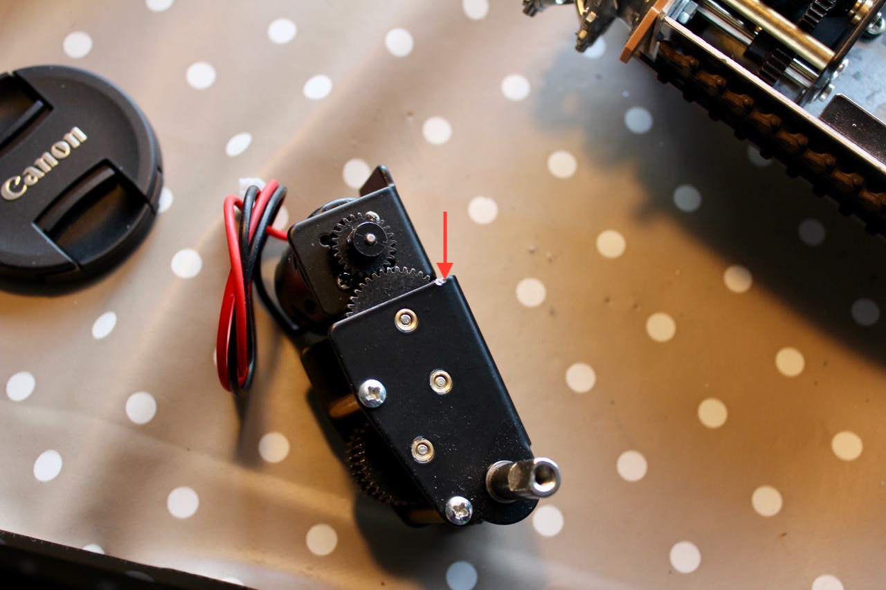 I used the same fix on the other side, although the screw was in a slightly different position. The arrow indicates where it made contact with the gearbox side: