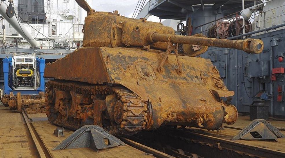 I read the story of the Thomas Donaldson sunk in 1945 by a U-boat in the Barents sea while bringing lend lease Shermans to the Soviet Union. Rediscovered a few years ago, the Russians are bringing up a couple of its tanks every years for museums and restorations.