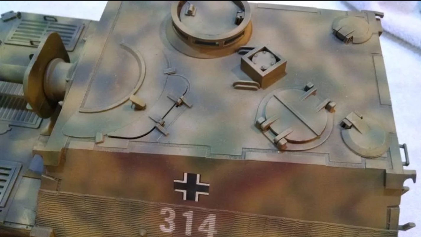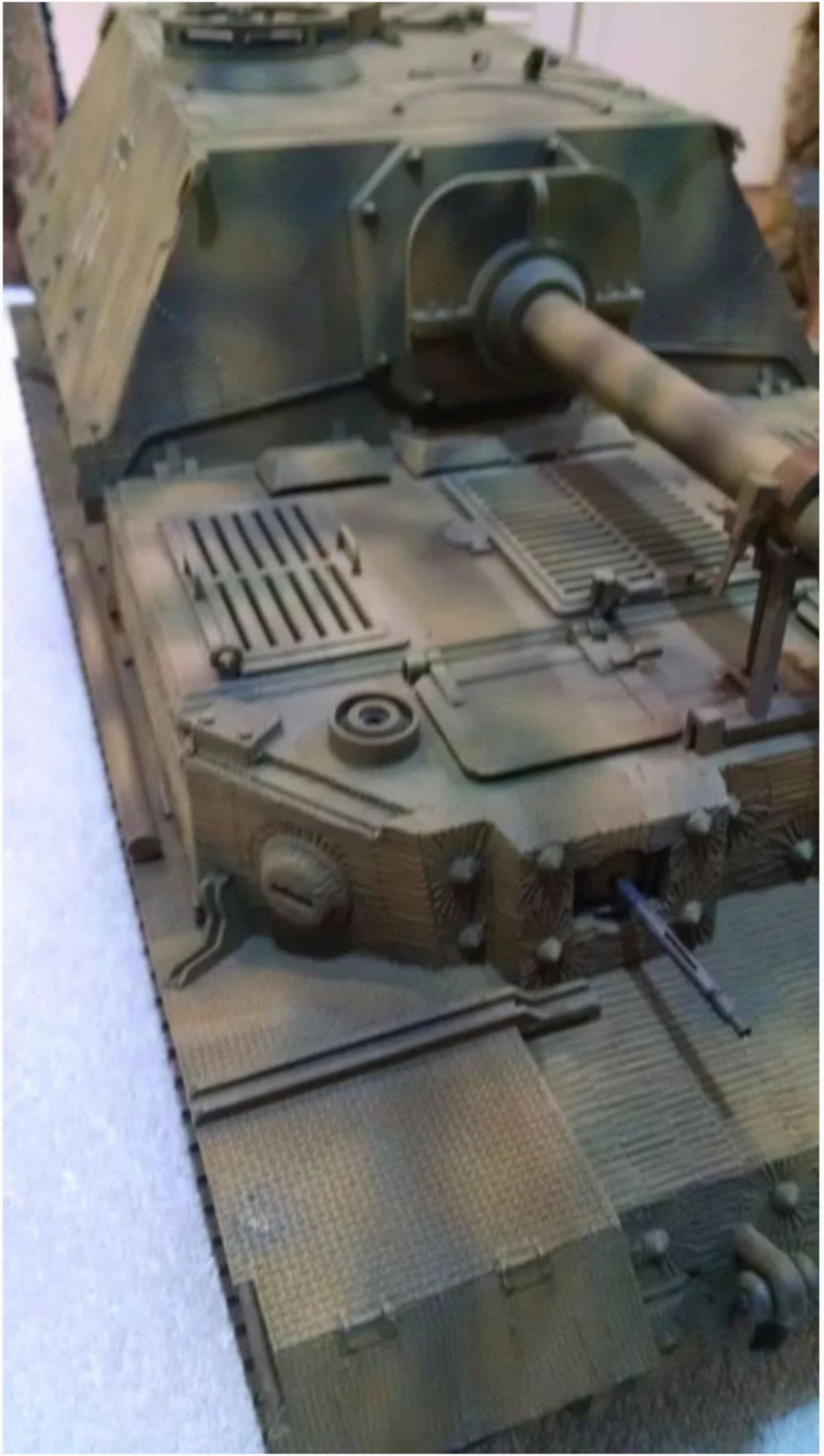 It had started life as an older static build (when c.rainford73 was primarily into display pieces and static models). It was however modified to accommodate some later Hooben goodies, Clark electronics, servo recoil and elevation. Also, metal tracks, zimmerit and larger Viasaton speaker in an enclosure.