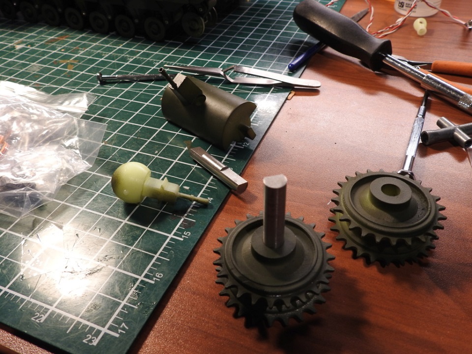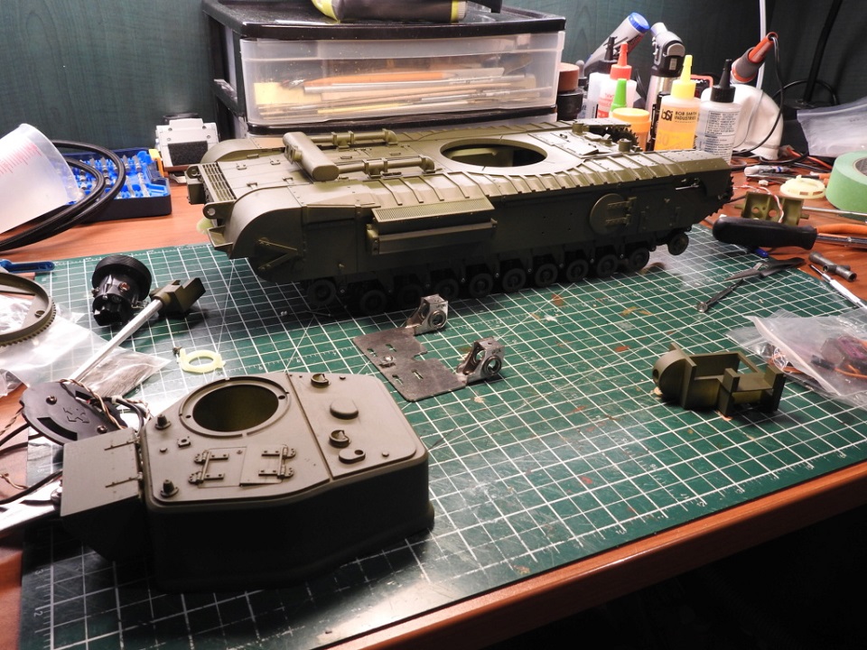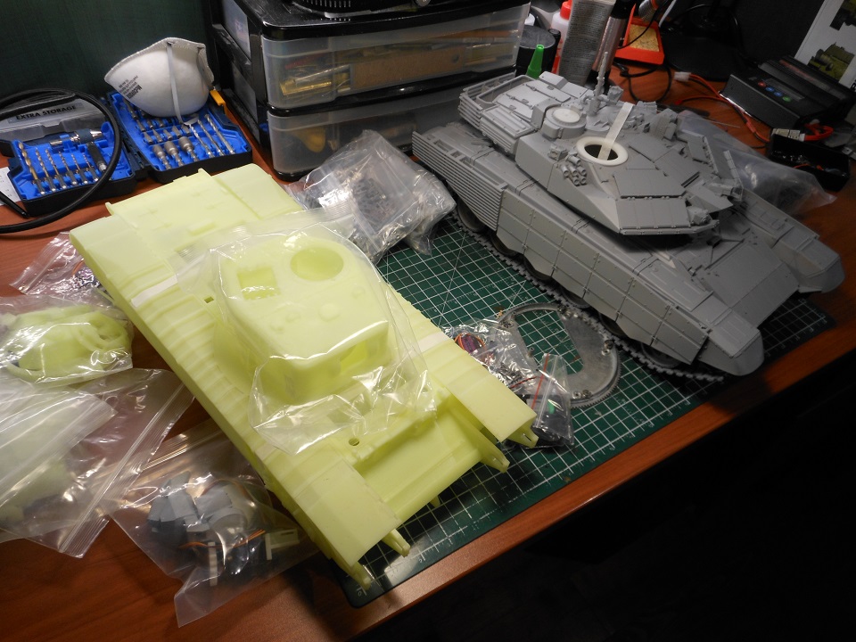 Thanks Everyone ! Haven't run it in the field yet as it is still winter here in Canada and everywhere is covered with snow and ice........ I am always horrible at taking build pictures but here are some more for your viewing pleasure...... The kit basically comes with everything other than electronics and gearbox (You have to use PDSGB from DKLM for the gearbox). All hatches are operable, custom metal track links, all wheels are ball bearinged. Servo elevation and Recoil and rotation unit are all included.