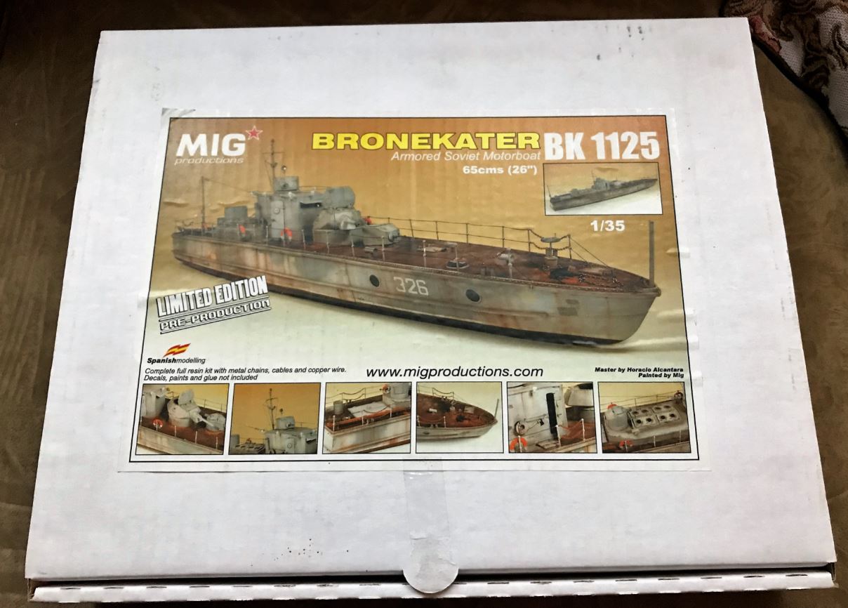 I was lucky to snatch a MIG 1/35 kit of the Bronetaker on eBay in January. I was quite intrigued as I never saw this boat or kit before. I purchased it by curiosity as it was relatively cheap for a big resin kit (ie $160 I think), and I found out later that it is a rare collector item. Quality is extremely good, resin, paperwork and presentation. Here are some pictures.
