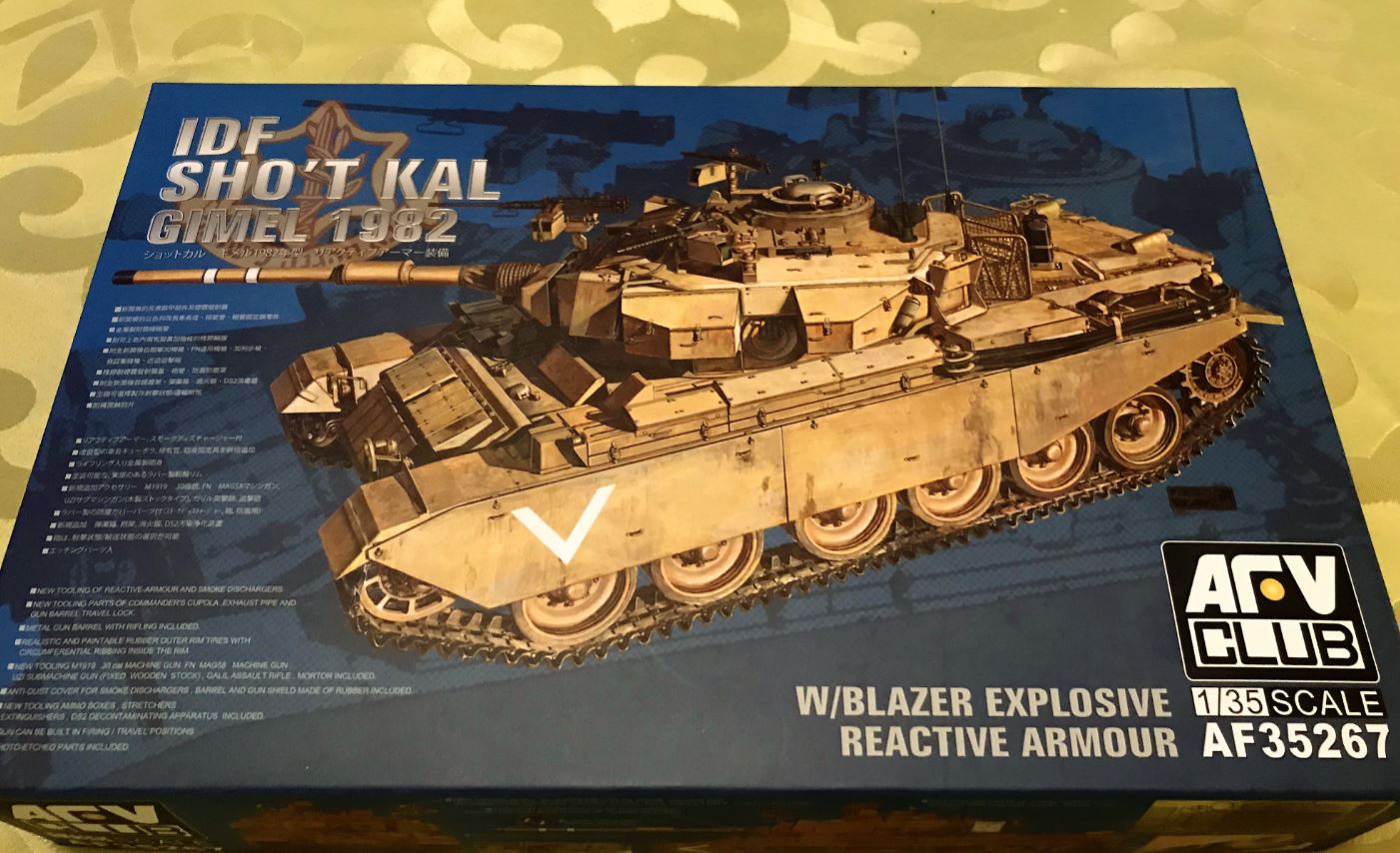 I will be helped by the AFV Club 1/35 kit of the Shot Kal Gimel, providing much needed dimensions and positioning for all the required scratch built modifications, Blazer tiles and details.
