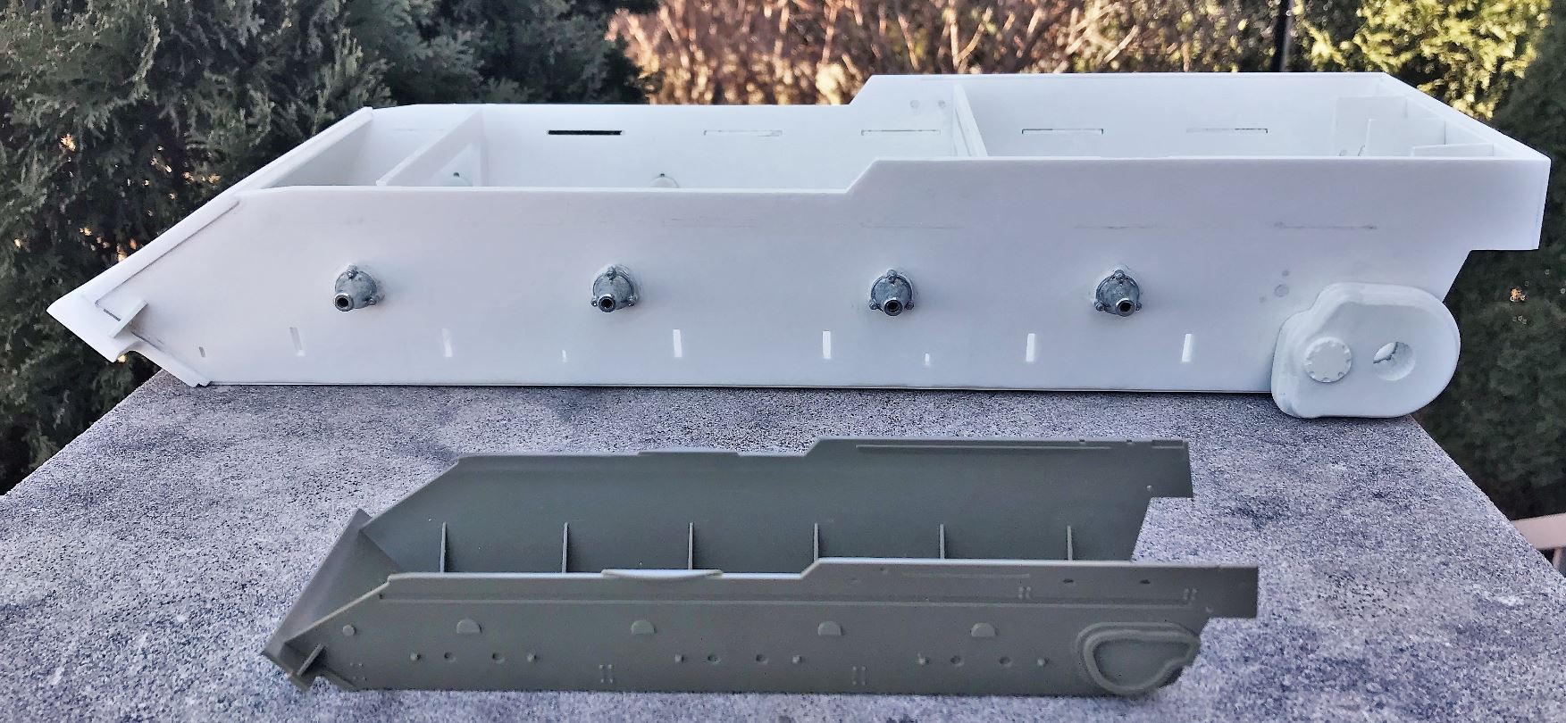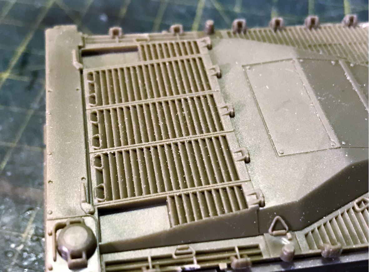 The lower rear extension is made the same way as the Israeli did on their real tanks with the addition of welded armor, with the weld lines replicated.