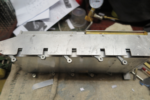 The upper sides of the engine bay were made from brass so I could solder the various spacers and supports to them before starting on the front of the hull.