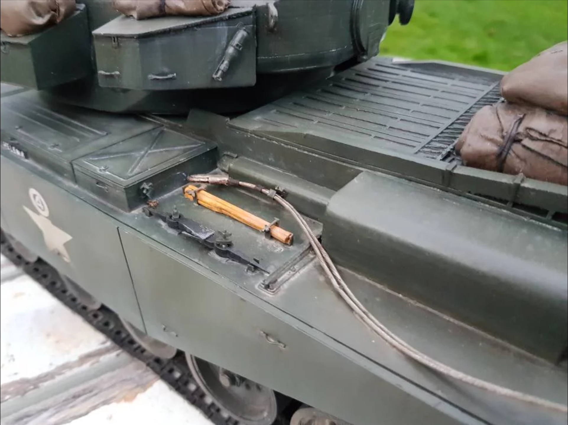 She's running a dklm PDSGB and Clark tk60, Tamiya battle system, hidden emitter, coax mg, led flash.