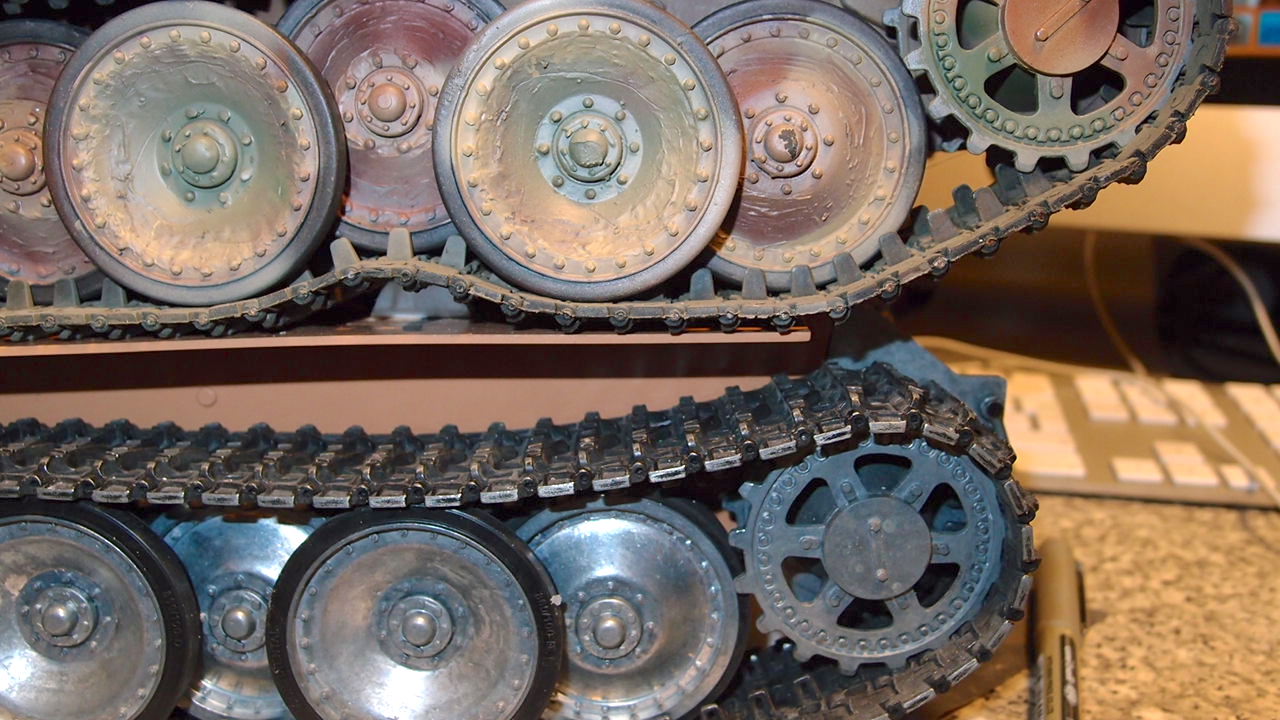 Was going to do some weathering on the HL panther and noticed this. Now everyone has made a big fuss about the outer wheels, ridge and the dish of the wheel has to be fixed. No-one has mentioned that the inner wheels are wrong. They don't have the rim between the rubber and the bolts just a lip is present. Well that's a lower hull for the bin,i am better off buying the better Taigen hull with wheels.