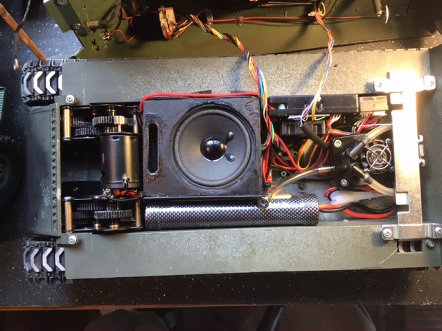 And finally, after working with small interior real estate, the after inside pic with hand made ported speaker enclosure using Visaton FRS7-S. That’s the biggest enclosure I could make even after removing battery box and verifying turret rotation clearance.