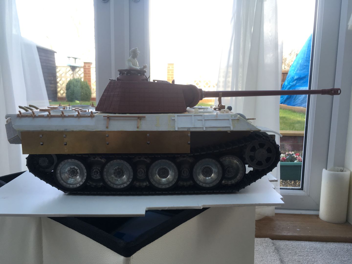 I think part of your problem here is an optical illusion of sorts. Looking at your Panther (which is marvelous) I have to say your Schurzen are too short! The plates should actually come down to the tops of the wheels. I know you don't get to see the tracks but it is the way it was... I hope this helps..