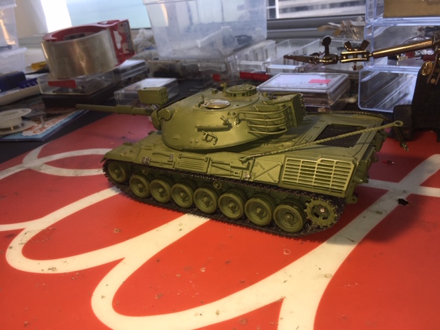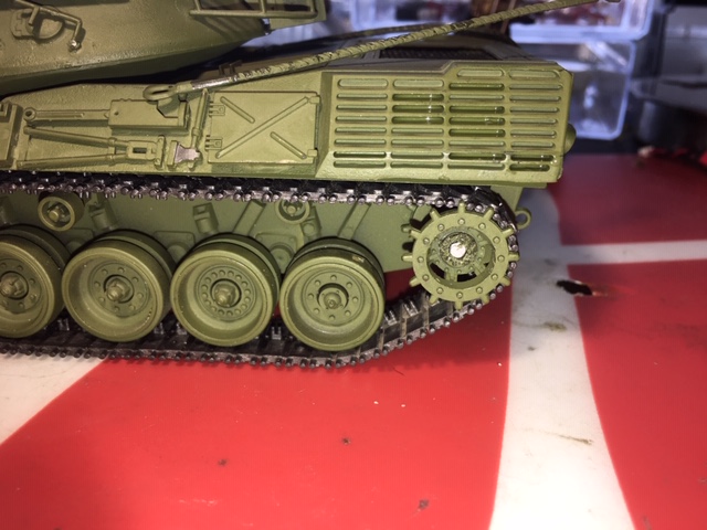 This is a NOS model that I brought out of my stash to build into a dual motorised radio remote control Tank. Along the way, I rebuilt Sherman #! and brought a parts Tank back to full RRC. I am not sure what Tank it actually is. It looks a lot like a German Leopard and has the same exact chassis as a Leopard but has a different upper Hull. I bought it used on ebay and the ad said it is a US M103. Any way back to Sherman #2.
