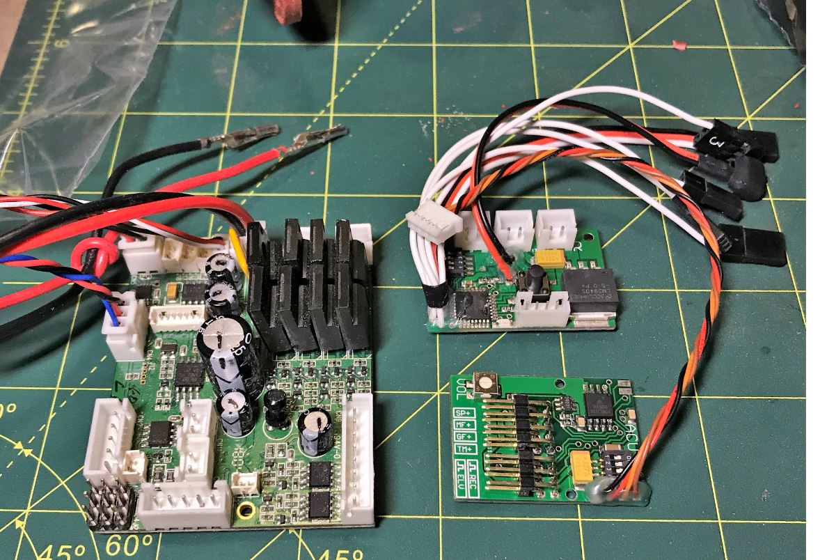 Size comparison between a Clark TK control board and the 35rctank MCT-2 and ACU units that provide similar features.