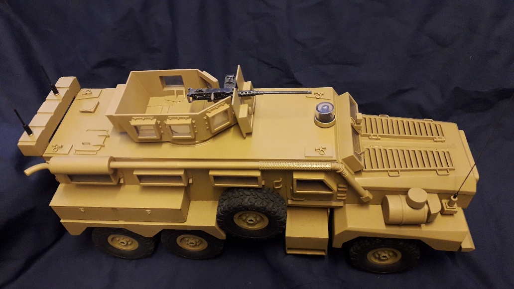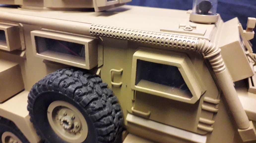 I have seen the bar armor on them in Afghanistan on American MRAPs of all kinds. I've seen a lot of them after they were hit by IEDs and most looked like they fared pretty well as far as the troop and driver's compartment go. Nice build.