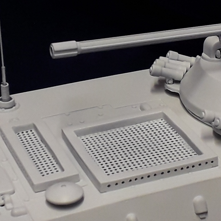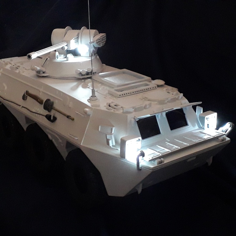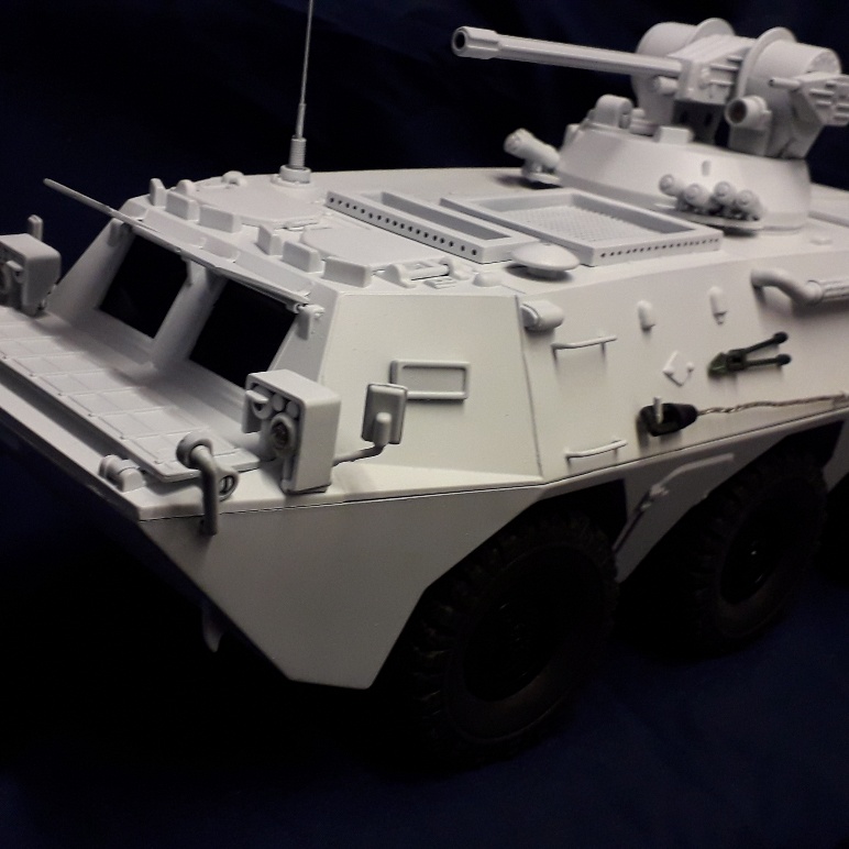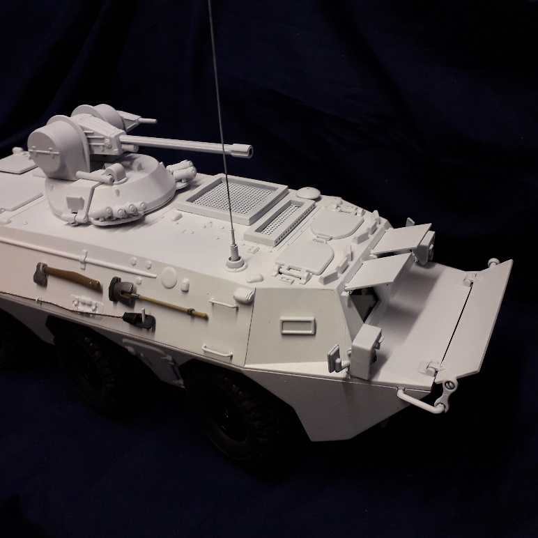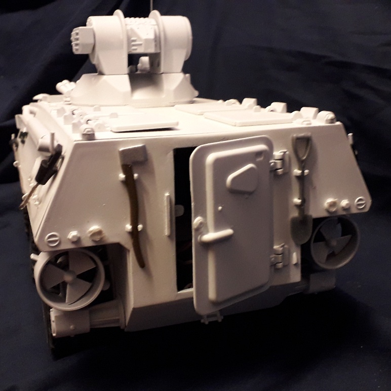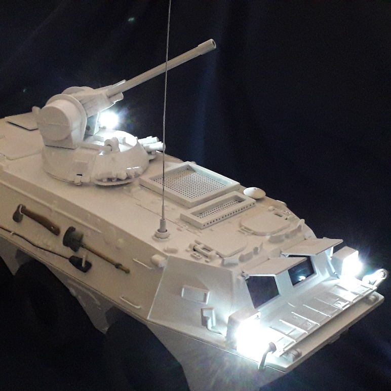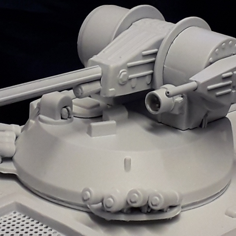 A 360° 25mm turret with coaxial 7.62mm mc gun, full elevation and depression,, working gun searchlight all working through an 8 wire slip ring.