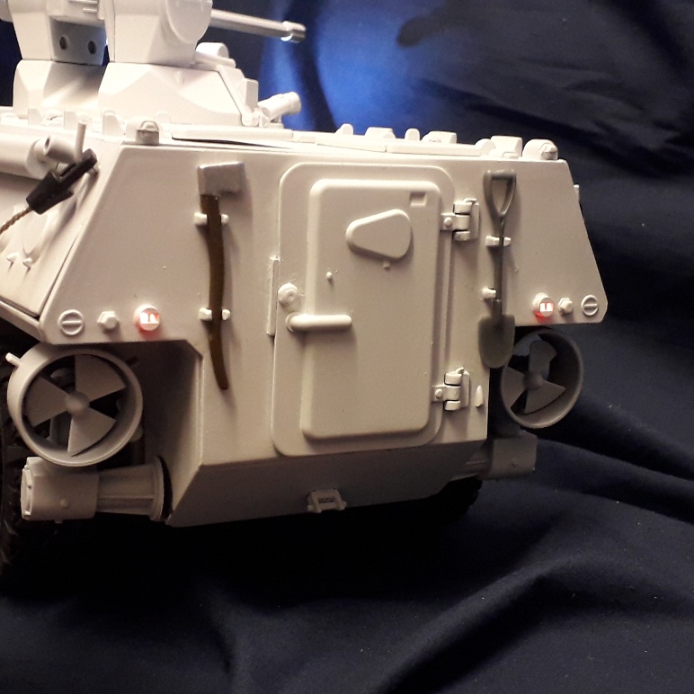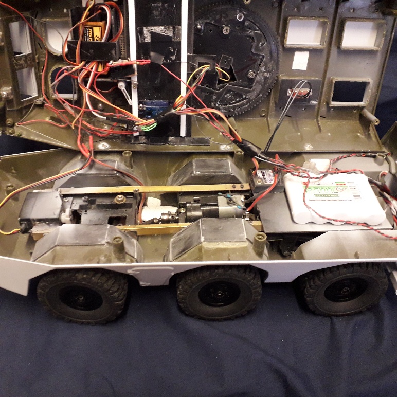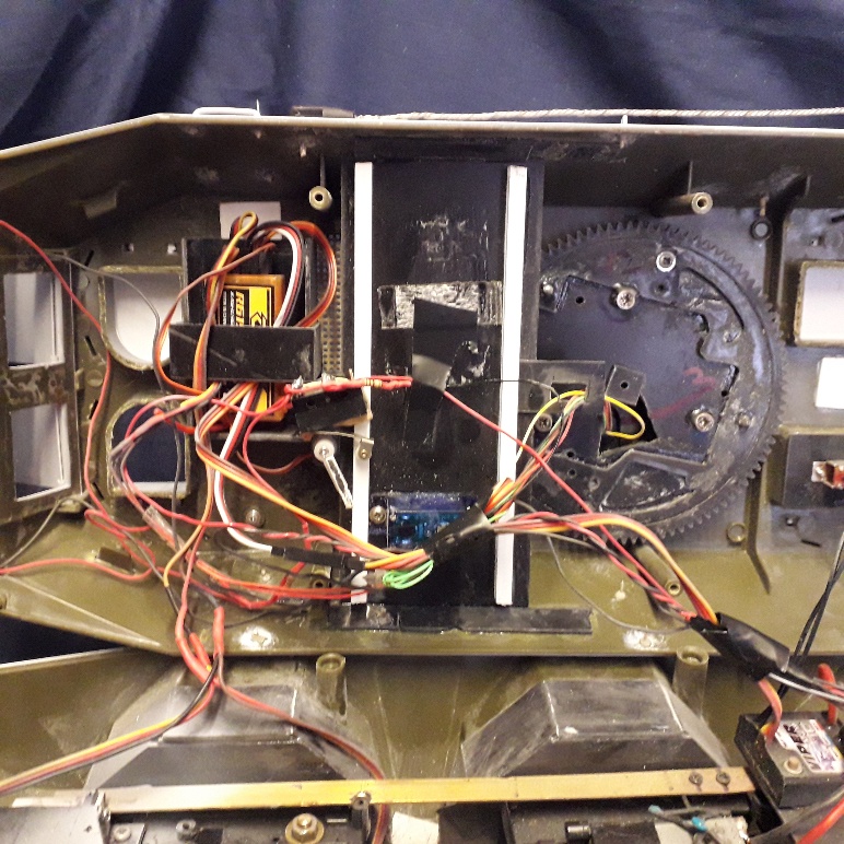You could also install a tank control board, like a Clark TK40 on this vehicle, which has 2 mg and would allow the main automatic cannon and coax mg to both have independent flash and sound. I also found that compared to an ESC, the TK40 offers good low speed power and control.