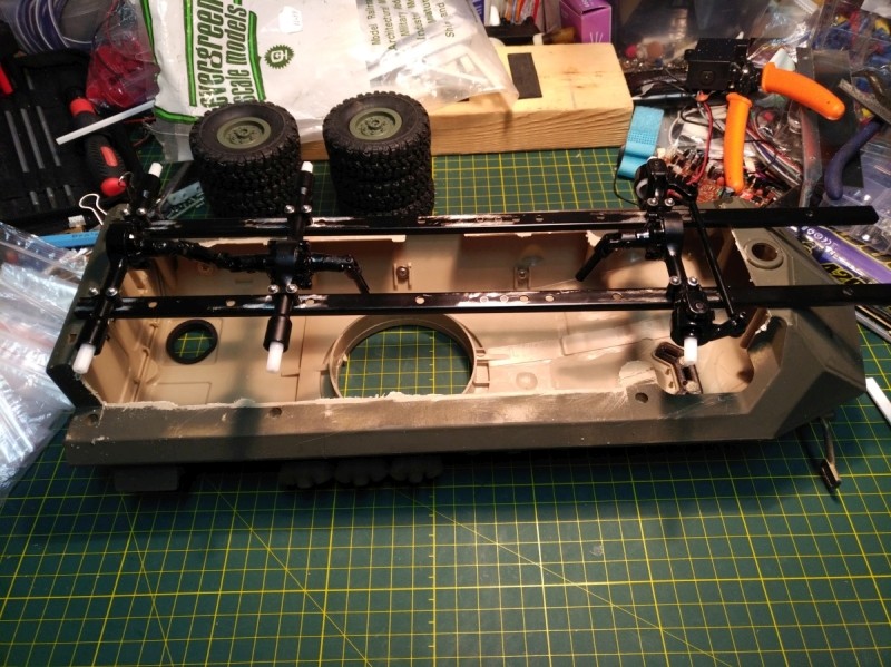 Side shot showing the height. I may also need to use Heng Long rotation units due to possible interference fron the new drive motors.