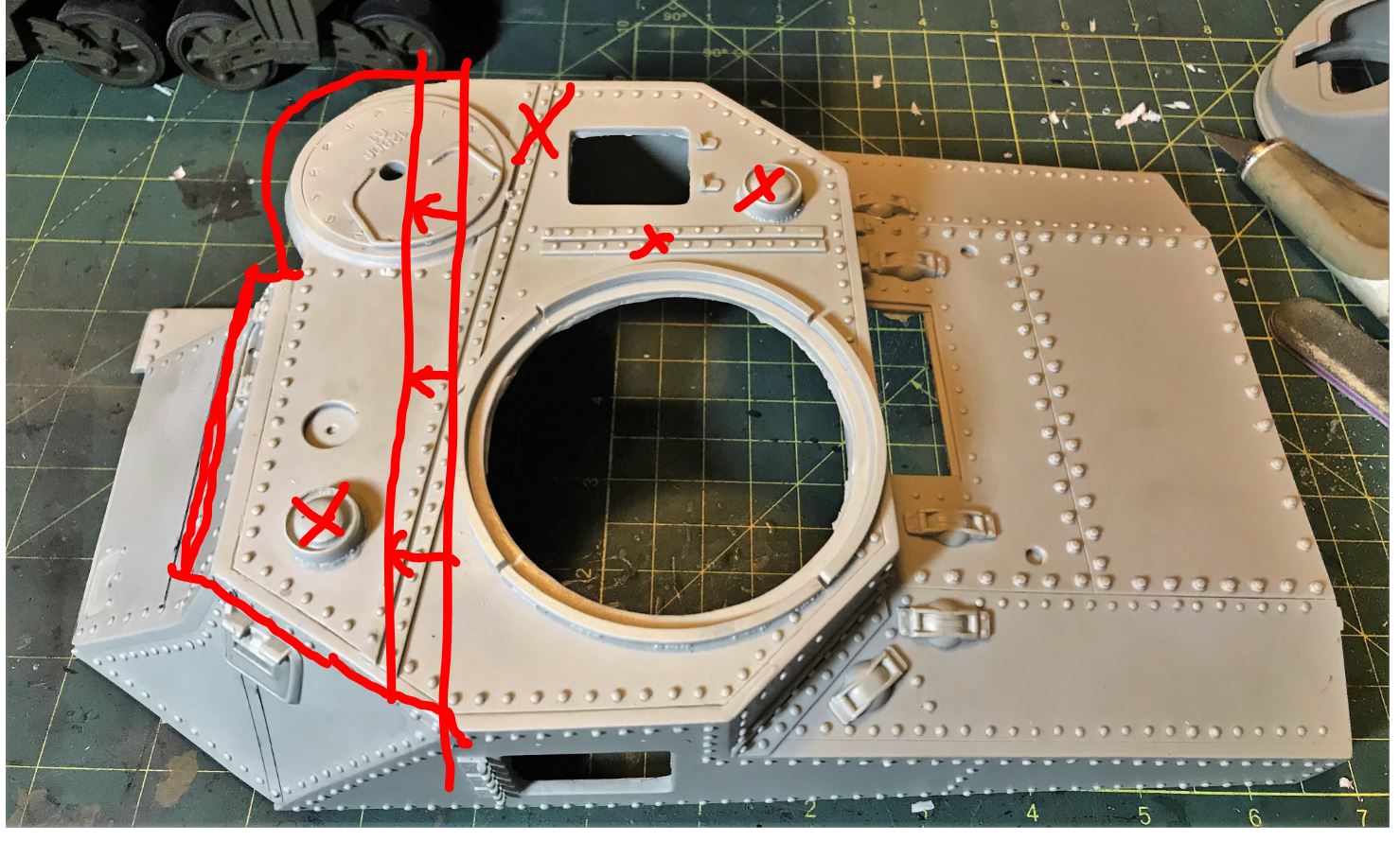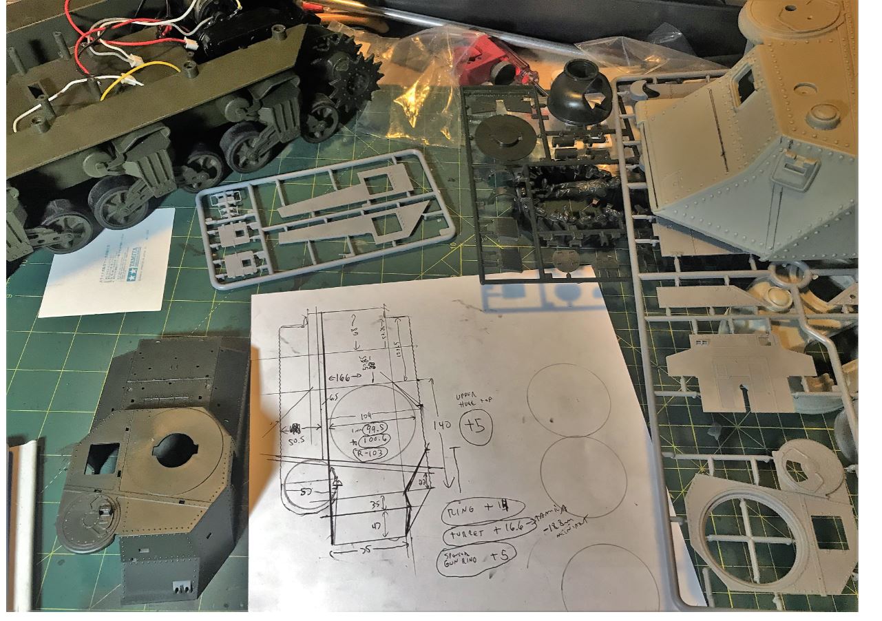 Four years ago, i created a M3 Lee with the material and my skills of the time. It is based on the Vandra kit and is mostly static with only the gearbox. I made some attempts at the time to fix some issues but i did not go all the way. It was based on a Heng Long M4A3. I drilled out the roadwheels, idler and flattened the chevron on the tracks. I beefed up the turret with the application of a plasticard sheet layer to make it a bit bigger. It looks ok but i think i can make a much better one now, and packed with RC features.