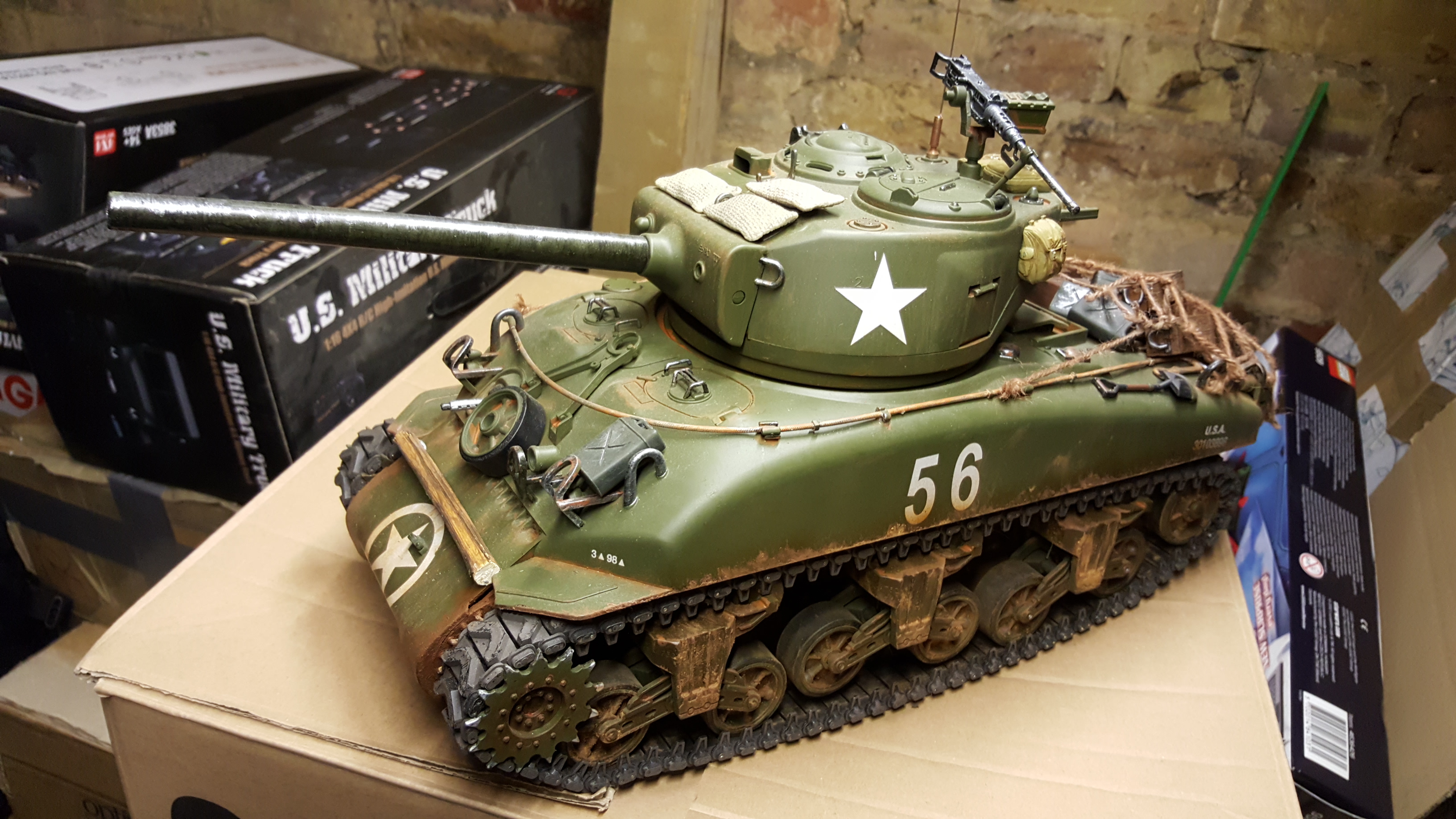 Since I'm a "Murrican," ;) I will start things off with an M4A3 76mm shod with duckbill tracks. I swapped out the original Taigen boards for the new M4 sounds Imex/Taigen in the US and others around the world are offering. I painted the commander figure and added front and rear stowage. The I-beam across the front is unusual; far more commonly the crew added a heavy plank. However, I found a vintage photo of this attachment. Then I muddied everything up, added a bit of rustiness here and there (mostly to the tracks, as Shermans often did not last long enough to rust) :( .