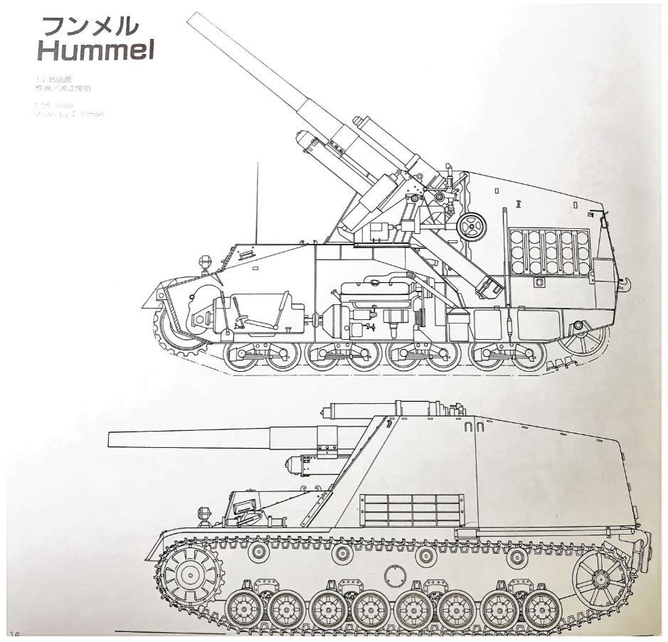 Like many modelers, i already have a Bandai 1/15 Hummel. I built it 30 years ago. lt's one of Bandai better offering from the 1970s. It shows it age and would need a full rebuild. But it is designed to fit their unmodified Panzer IV chassis and is therefore inaccurate to the German armor experts. The Hummel was based on a hybrid Panzer III/IV chassis and is a bit longer. Lack of commonality with 1/16 parts on the market is also in incentive to build a new 1/16 scale model. But what does 1/16 mean. What i thought would be a simple calculation by extrapolating 1/35 references turned out to be complicated.