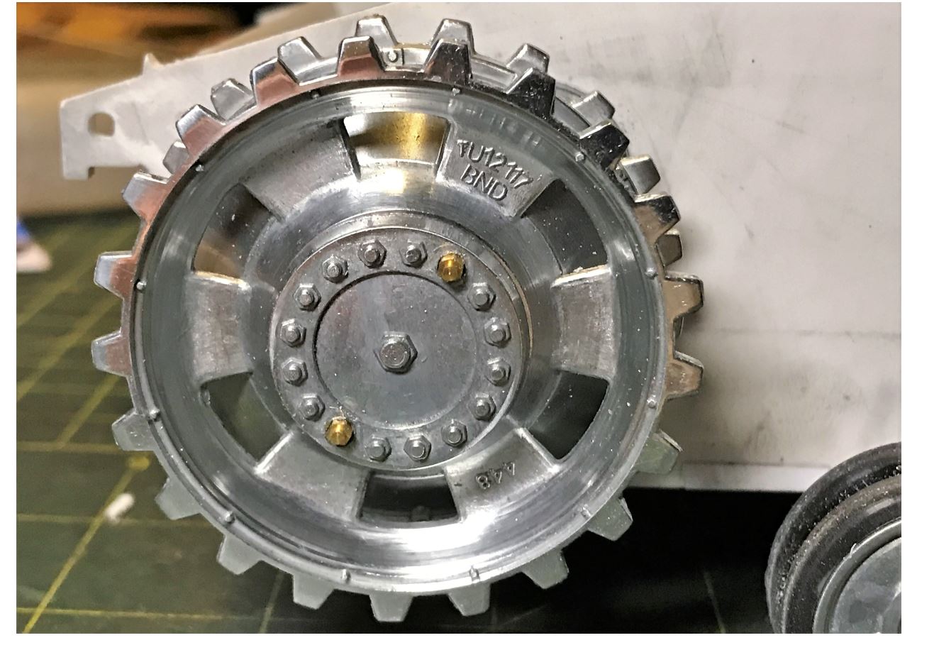The metal road wheels are installed. The Hummel will run Mato metal tracks.
