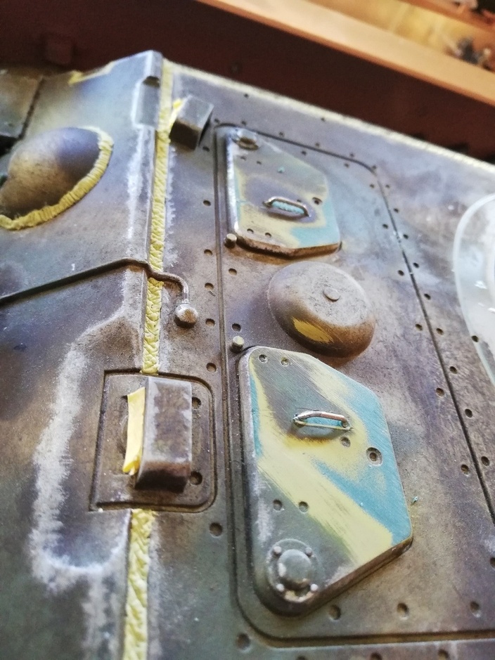 Then I added weld lines to the tank (yeah I know: too big and actually there shouldn't be one around the commander's hatch...).