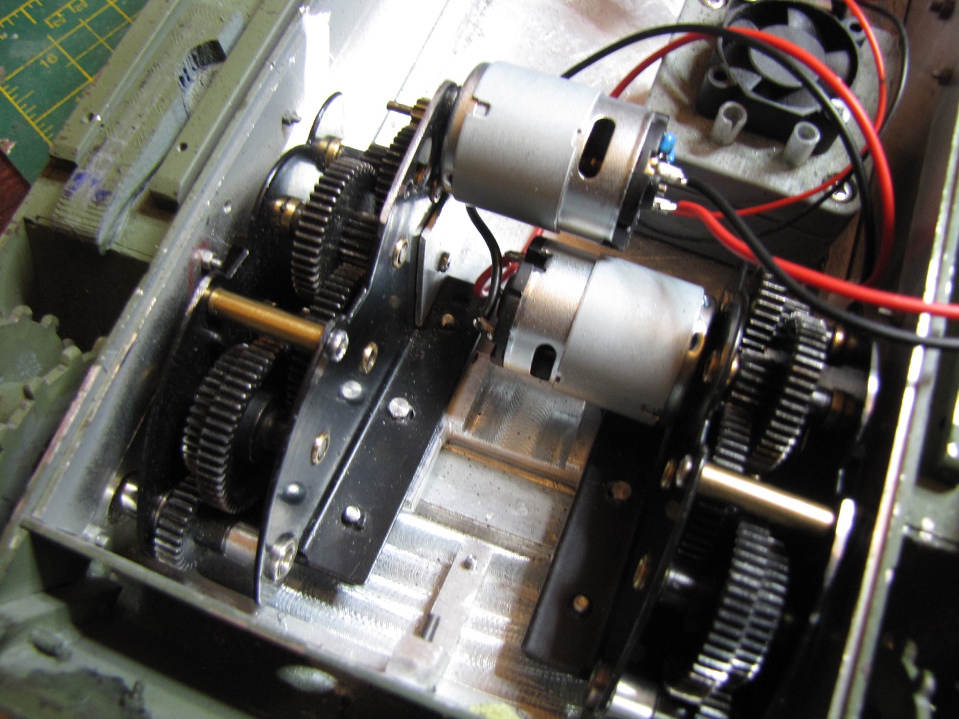The 47mm body length of my present Taigen motors, assumed to be 390’s, were as long as I could fit in the space available without making custom gearboxes. I had already moved a motor on a 4:1 gearbox in order to fit the space available in my tank.