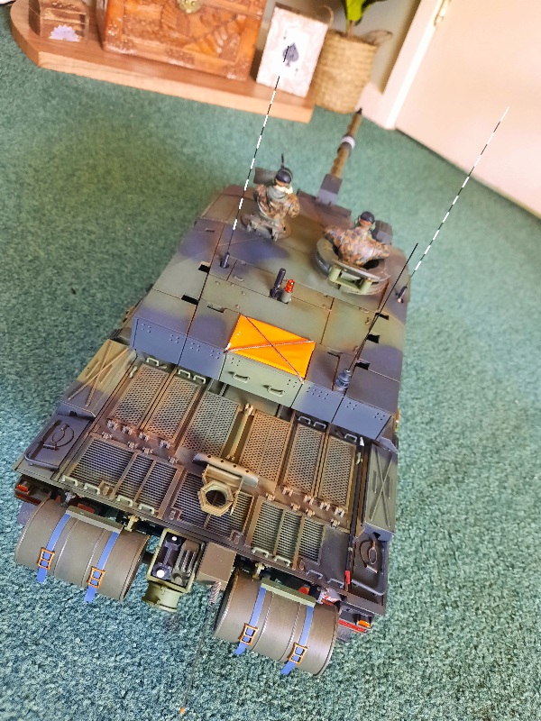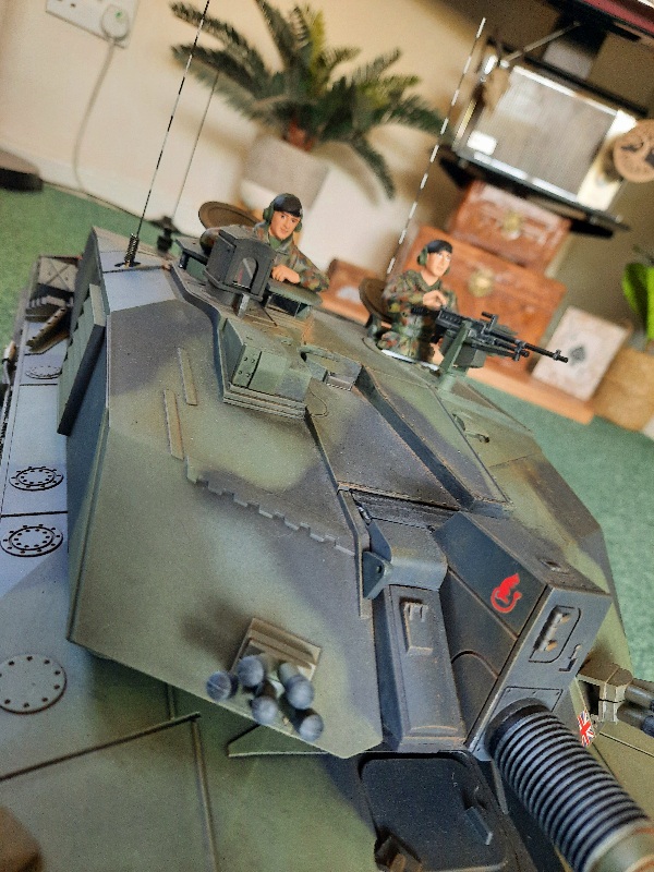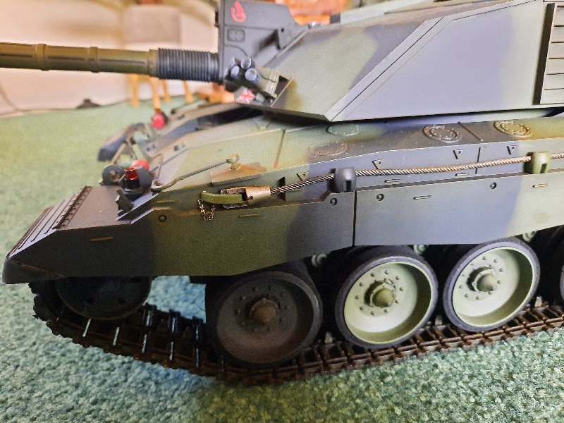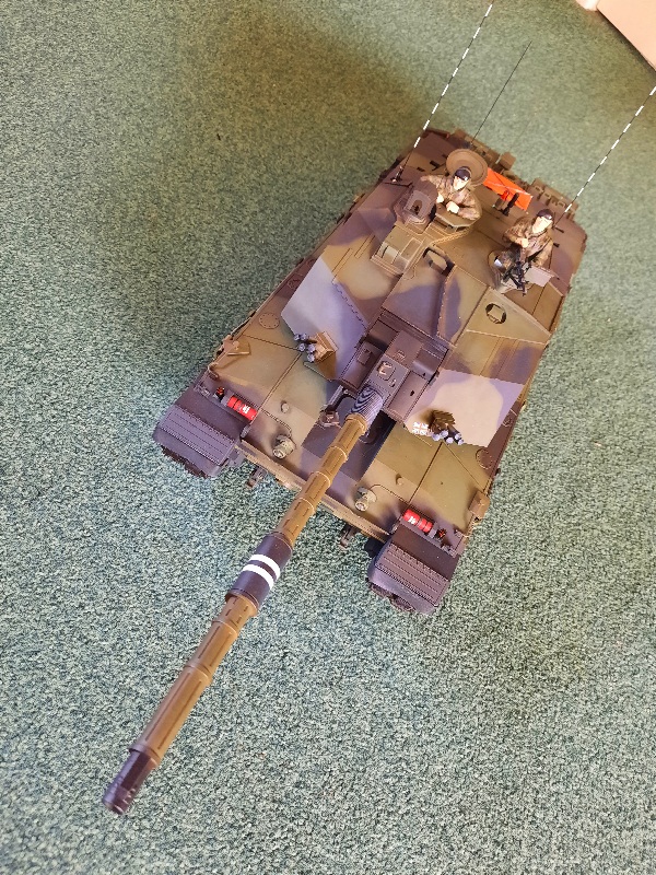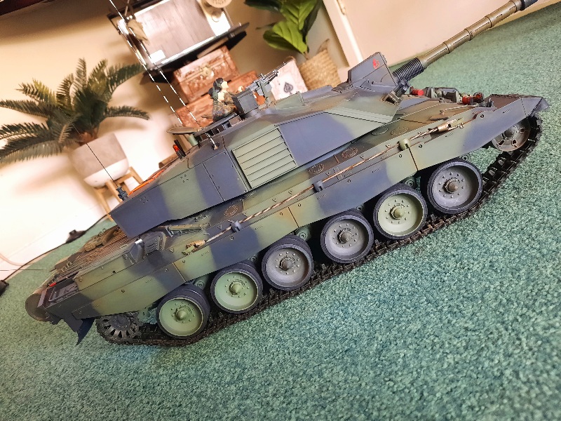 Finished my Challenger 2. Wanted to try and depict a U.K. based one. Subtle weathering, 1 or 2 extras added, and the Haya Chieftain crew added and repainted. It also has the HL ultimate ii gearboxes driving standard plastic sprockets/wheels (road wheels have foam/rubber tyres added found sound deadening, the tracks are plastic with home made foam/rubber pads, all to keep the weight down and speed up.