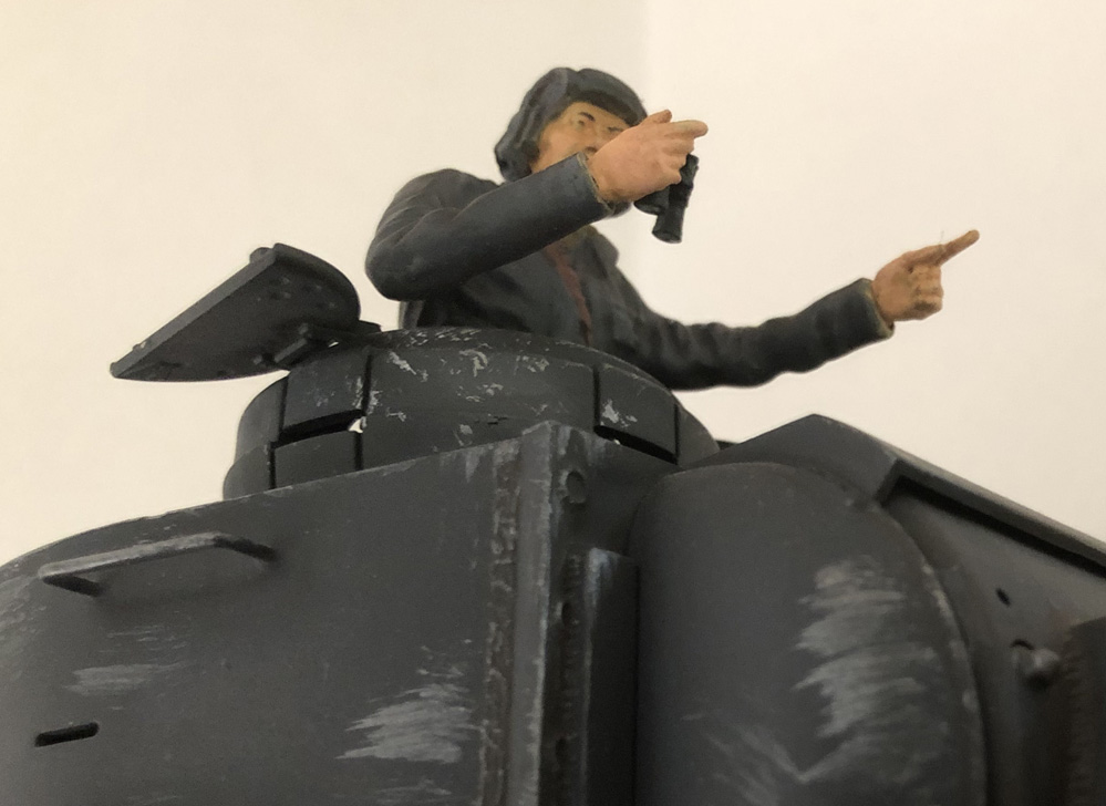 Here are two shots of the agitated Russian tank commander available from Canadian RCTW member's https://dgsselkirk.wixsite.com/dgsmilitaryhobby. As I put a final coat of flat finish on mine, I realized that I may have too light a touch. There are at least eight different Vallejo and Tamiya colors on the face. (I lost count and cannot remember any of the mixes anyway.) In the end, I used a touch of oils, with an oil wash over the whole figure. Yet in the photos the figure seems wholly unweathered.