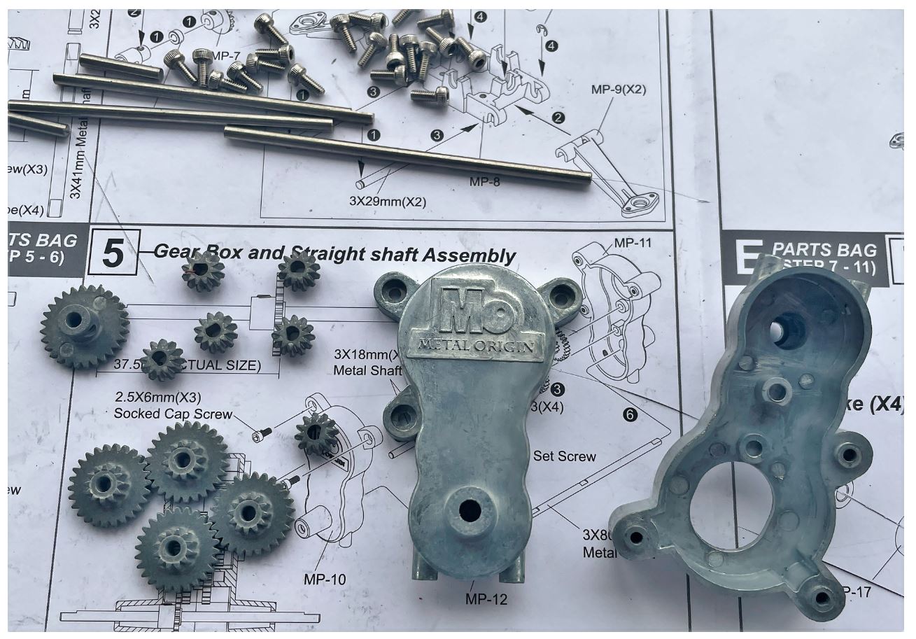 This is the dreaded Metal Origin custom gearbox. Of course, steel gears would be better. I somehow do not find it too bad myself. It should do the job with careful assembly and use. The availability of spare parts is my main concern for the future.