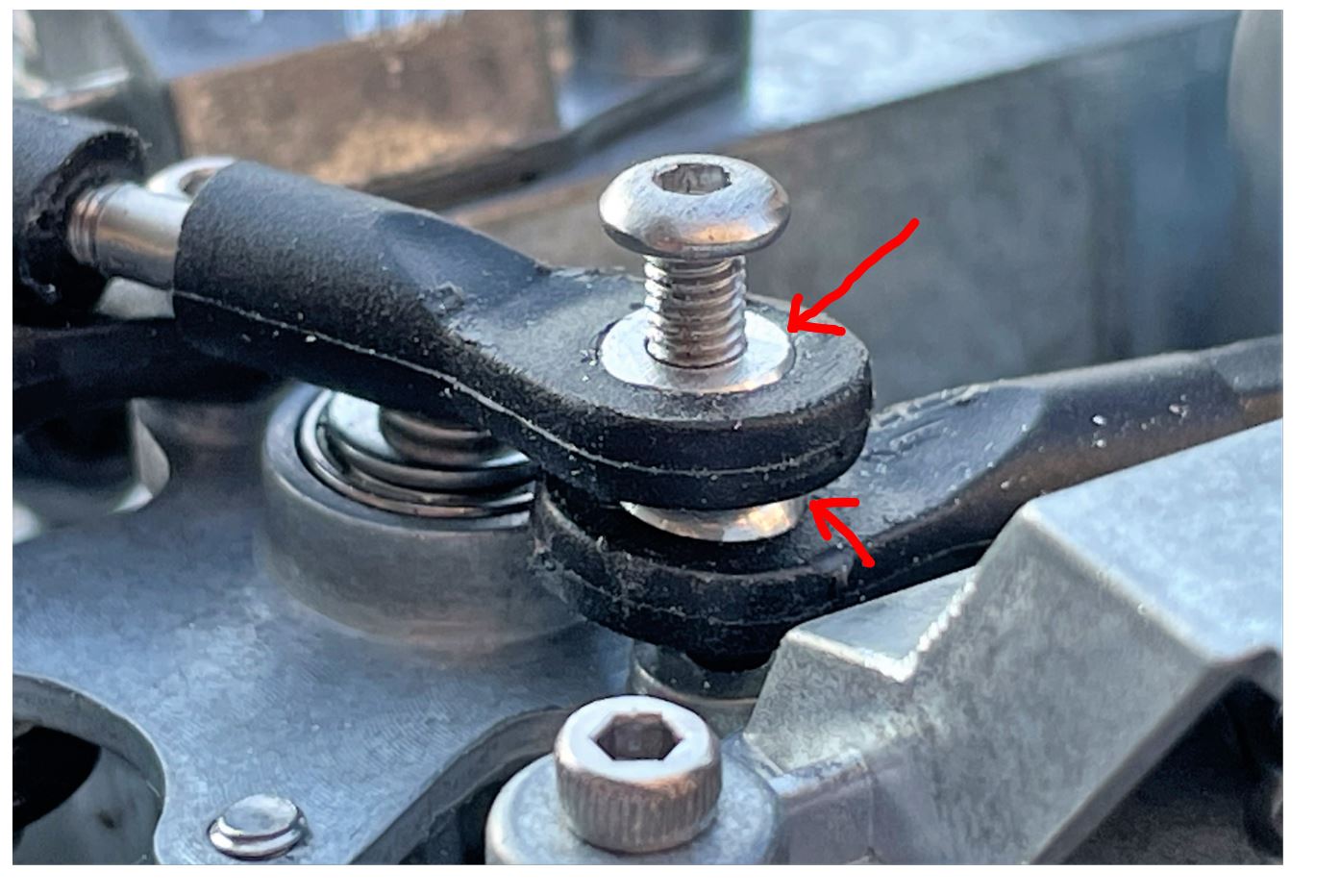 Those 3 washers indicated on the revised instructions are absolutely required to elevate the servo platform and clear the steering arm below. The servo end points need to be reduced to about 30% on both ends. Otherwise, this powerful servo might damage the metal mount and steering rods.