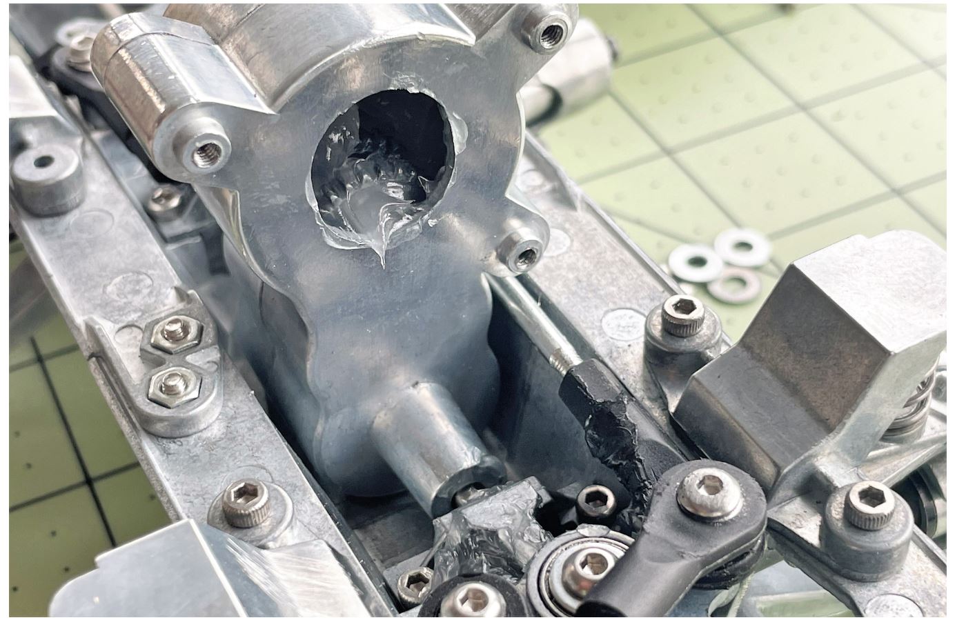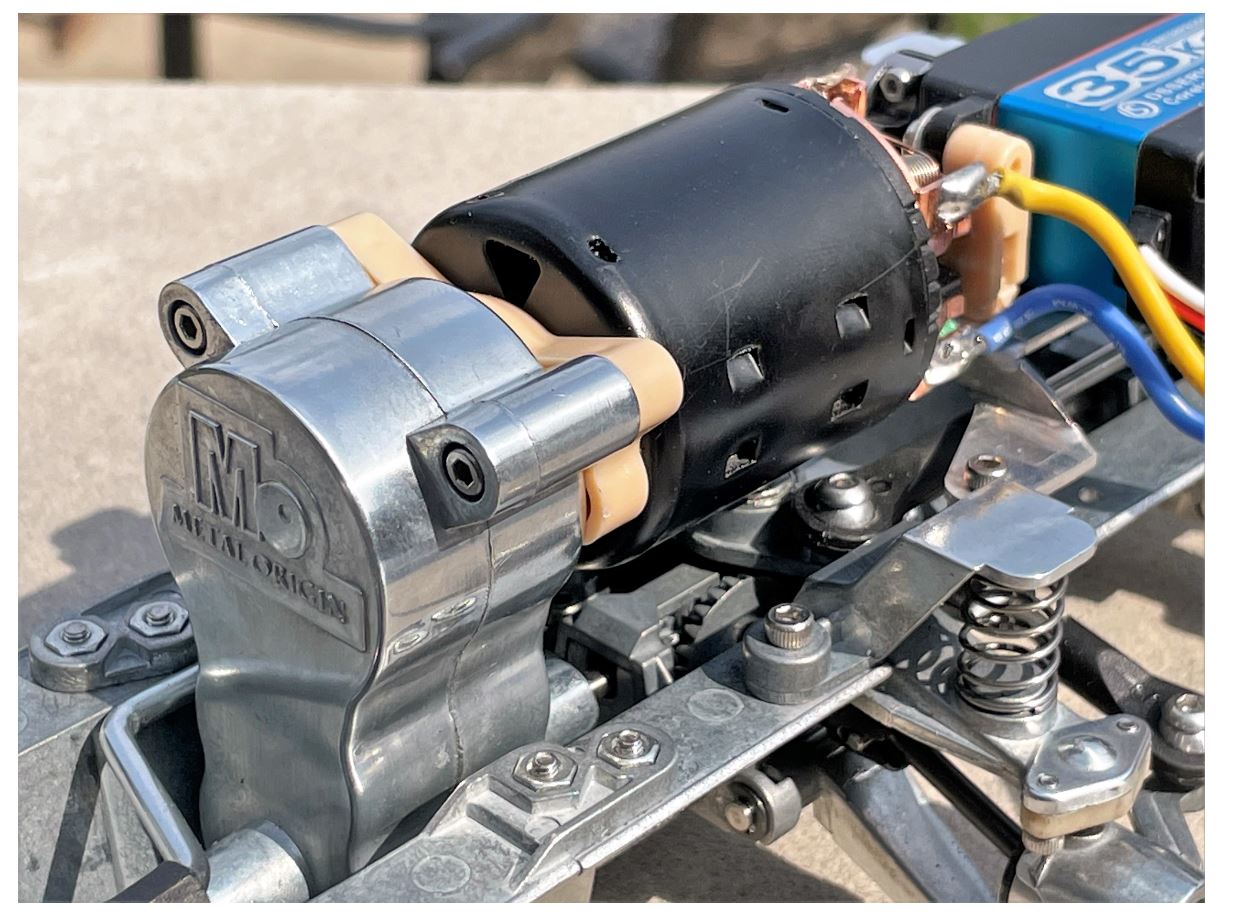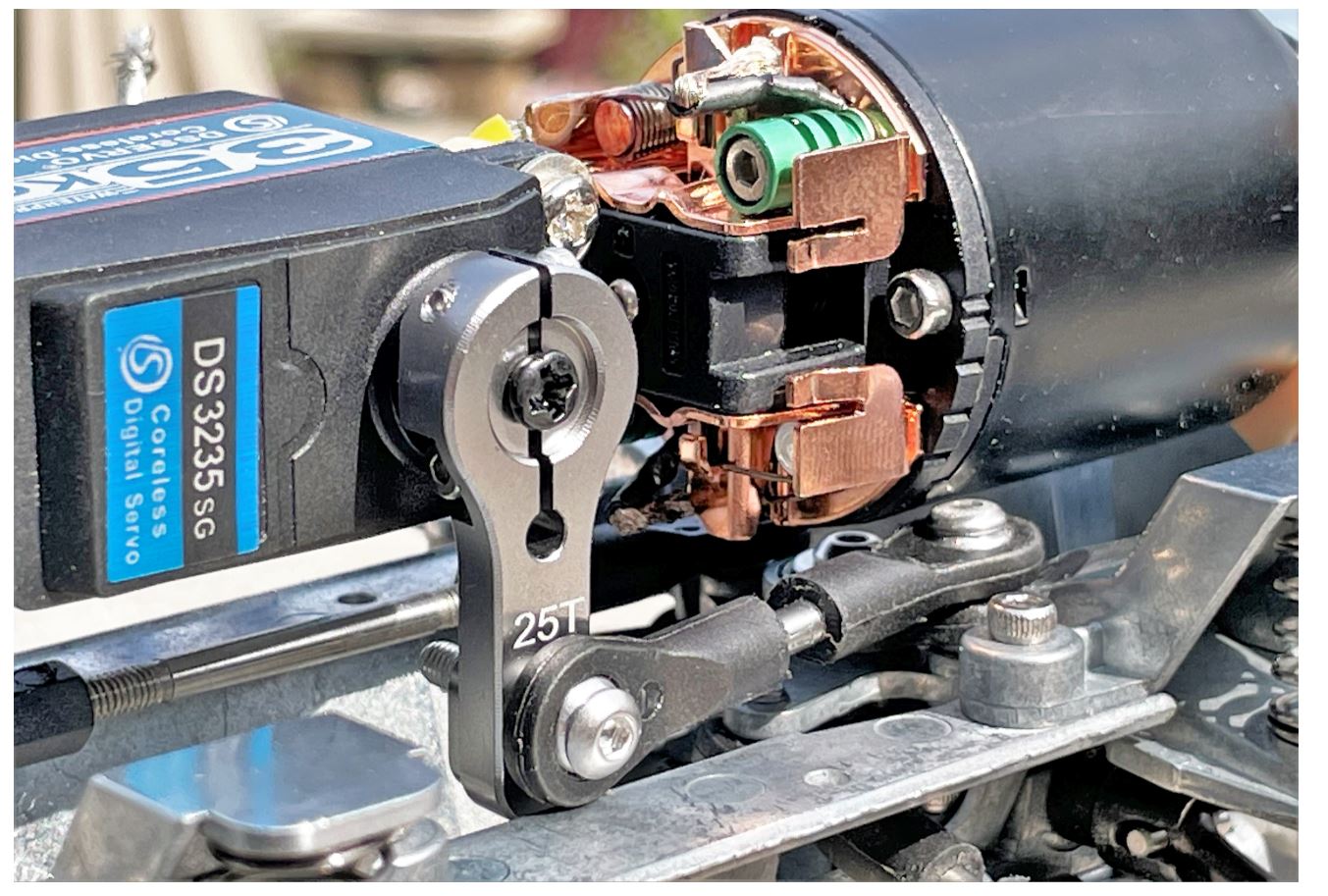 The 2 connectors on top of each other that links the servo to the main steering rods need to be grinded in order to clear the motor above it.