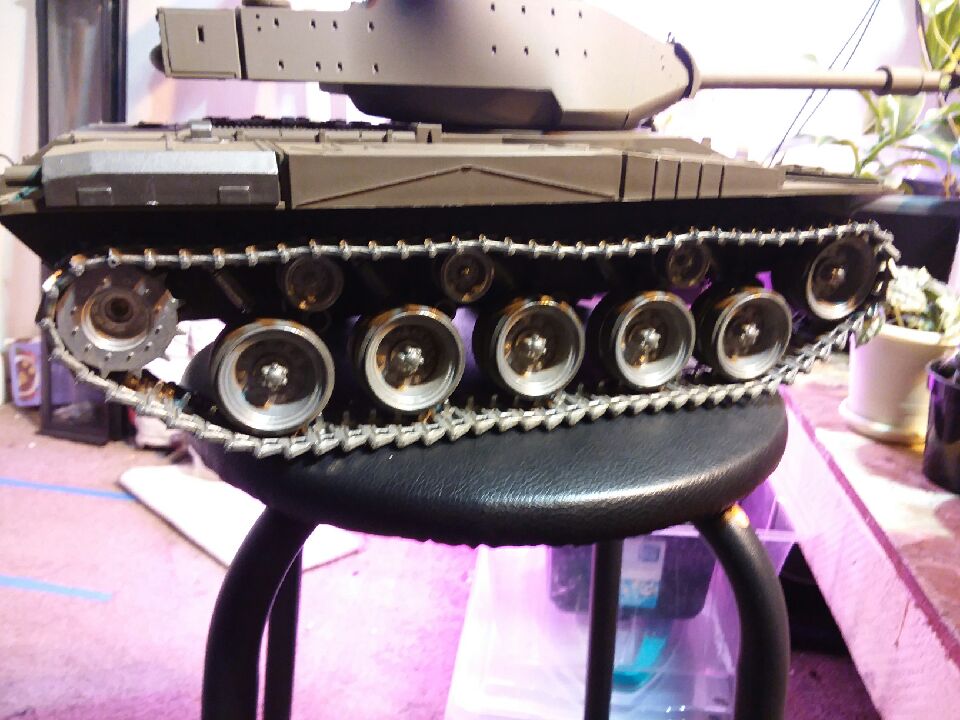But my metal shocks got here today for my walker bulldog. Now I know I have enough springs and spares to take care of any issues that they may bring up later. I counted my tracks like 3 times each, and they are both at 74 links, and will not seat comfortably with 73. So stronger shocks it is. At least for the back 2 pair. This will allow the return wheels to stop rubbing the road wheels (making a truly terribly sound the whole time...)