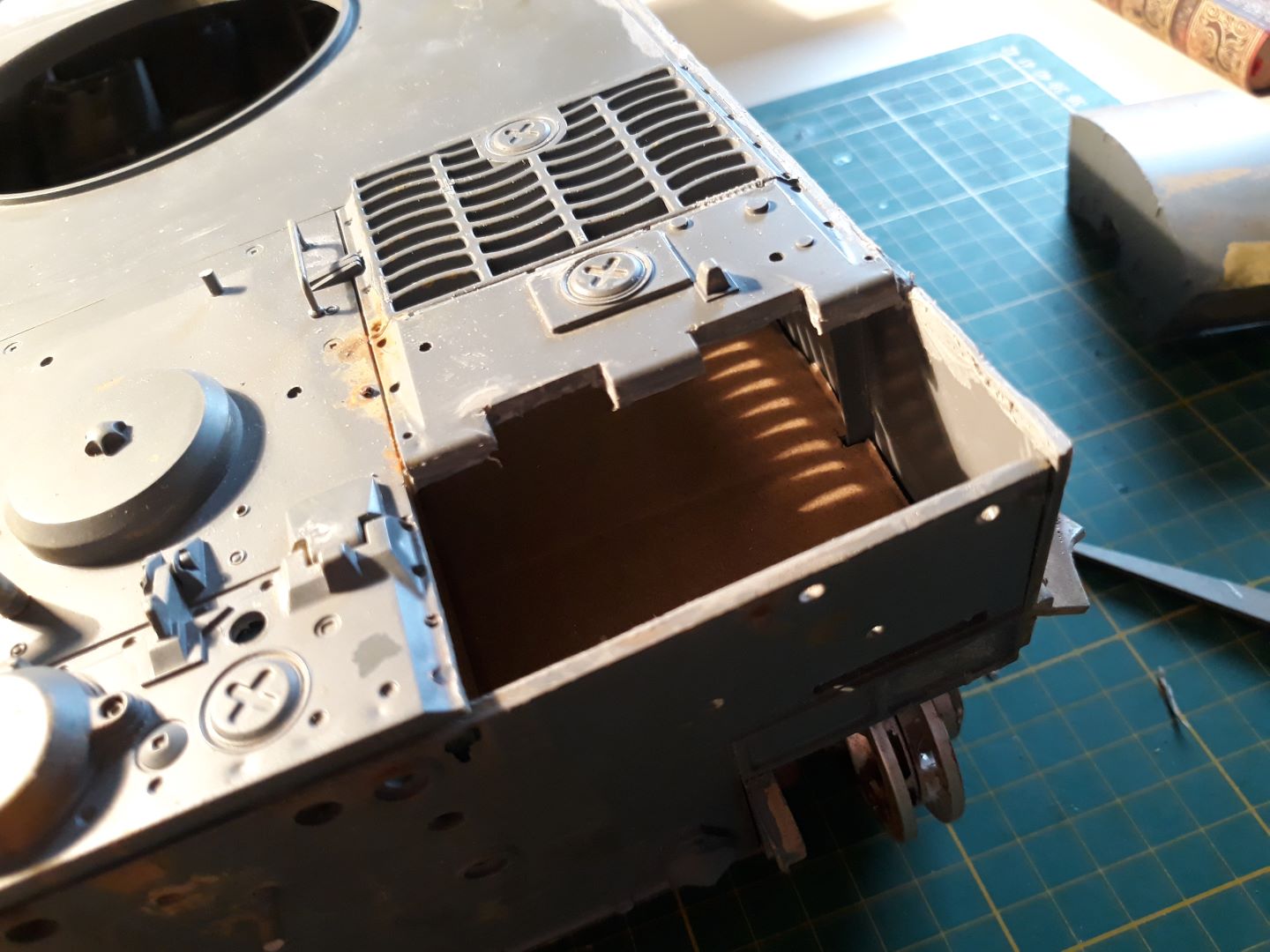 I started by cutting of and opening the rear deck as well as removing the rear turret box