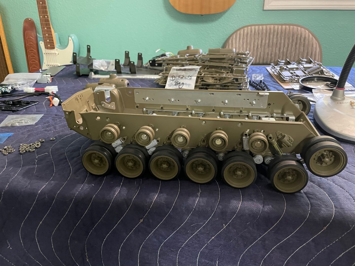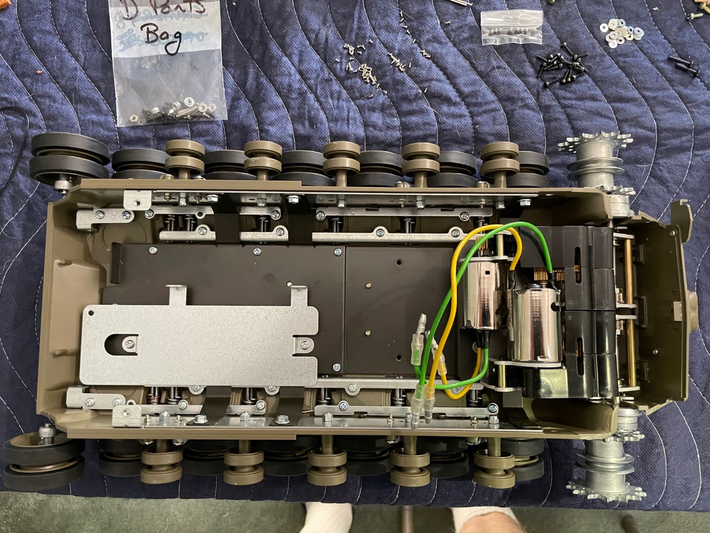 I'm starting a build that will be my first Tamiya, 1/16, RC build to date. I have "assembled" a couple Taigen tanks and performed a few minor upgrades, but this is my first build as it were. I just bought this partial kit on eBay. I had noticed it was missing the electronics, but as I discovered once I had won the auction and received the kit, it appears to be missing a few other items. I wouldn't have set the limit as high, and thus would not have won the auction, had I paid closer attention to the listing. But now the deed is done and I have started assembly of what I have. I've put out feelers for the missing items, an electronics package, and tracks. I think that is all that is missing.