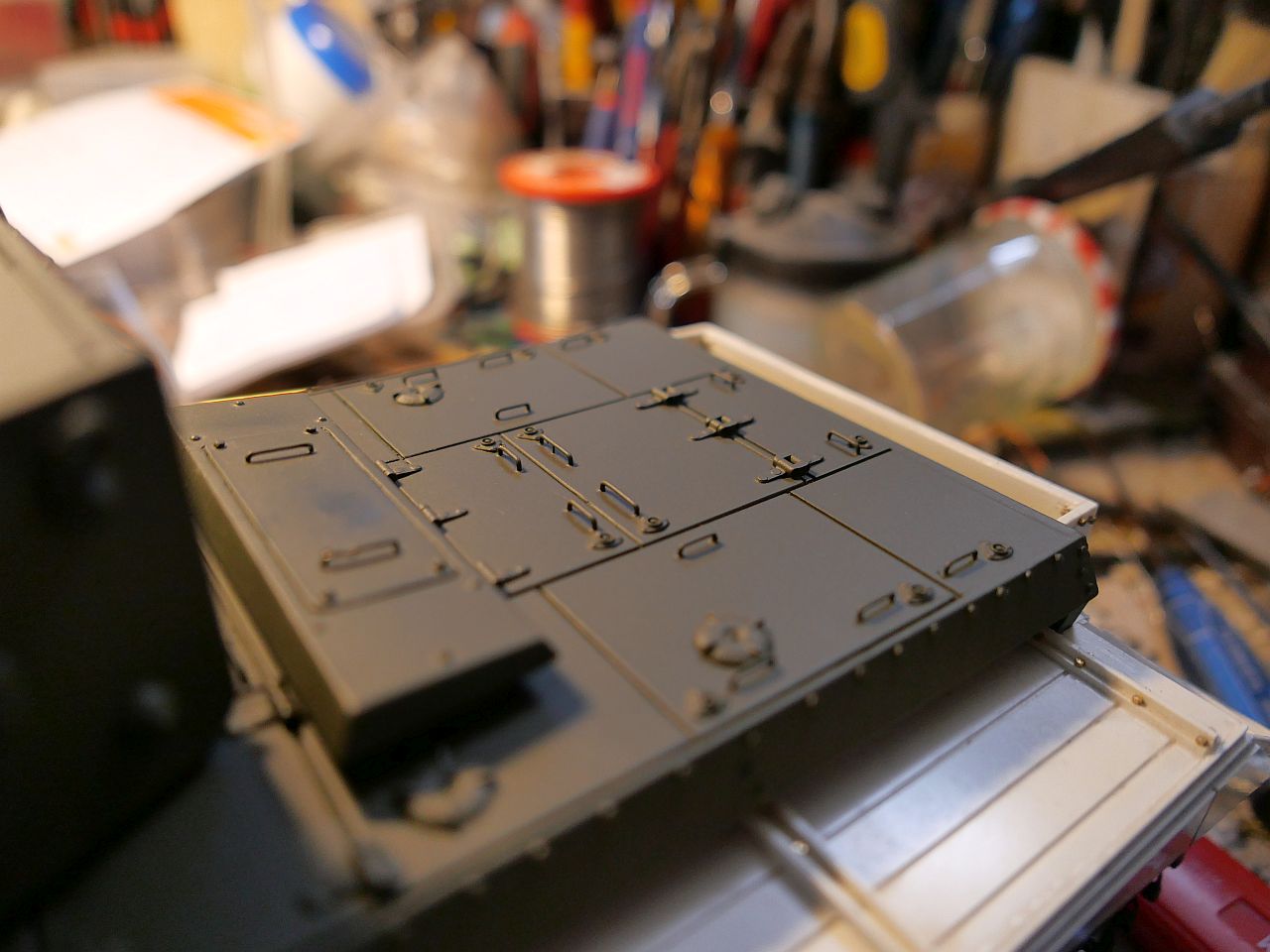 Handles and details mounted and painted on the engine deck