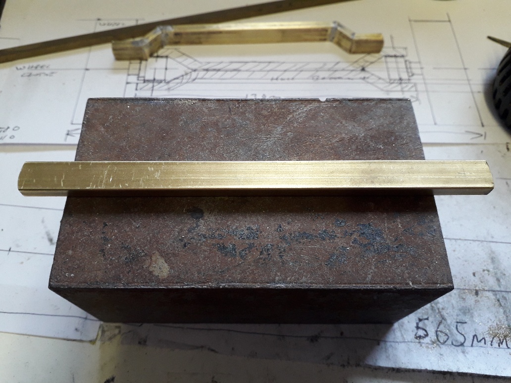 I prepared a scale drawing of the axle that i had in my head and it looked like it would work so i decided to make it from some rectangular section brass stock thay i had in my metal store.