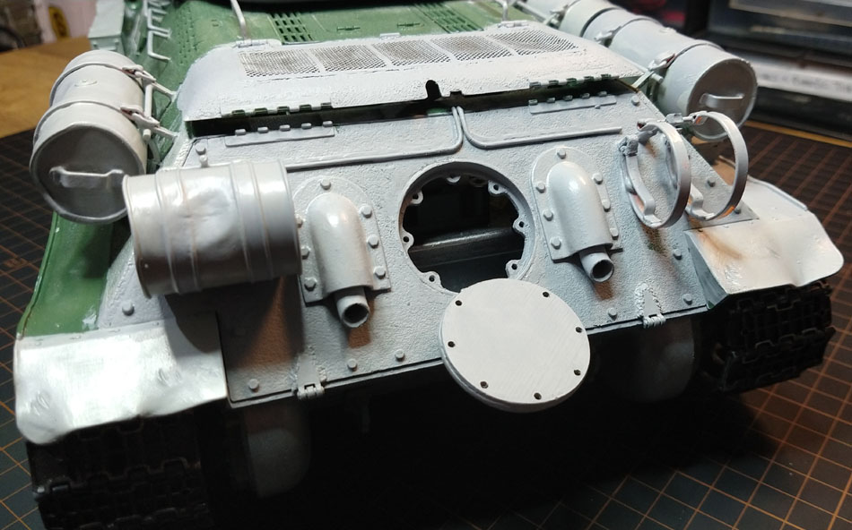 In the end I opted to do make only the rearmost cover openable and use this as access to the engine compartment. However, I the round cover in the rear armour, also a non-opening moulded fixture, bothered (no idea why :crazy: ). Consequently, I design and 3d printed a reproduction of the bolt fittings, removed the moulded cover, and fitted it with a working hinge: