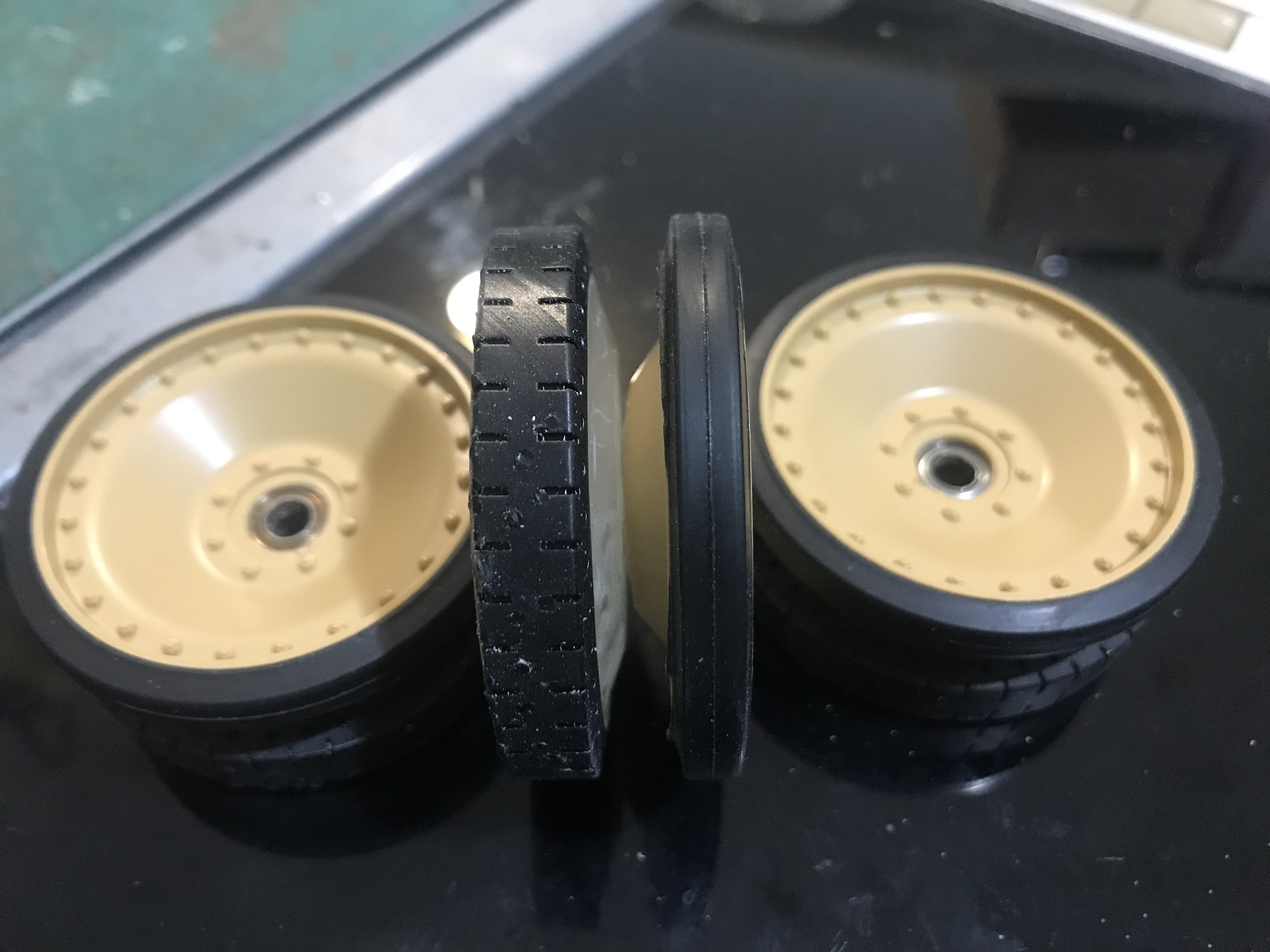 Well, after an hour or so of rough work with my normal tools, I have 3 wheels pairs with Panther outer roadwheels fitted.