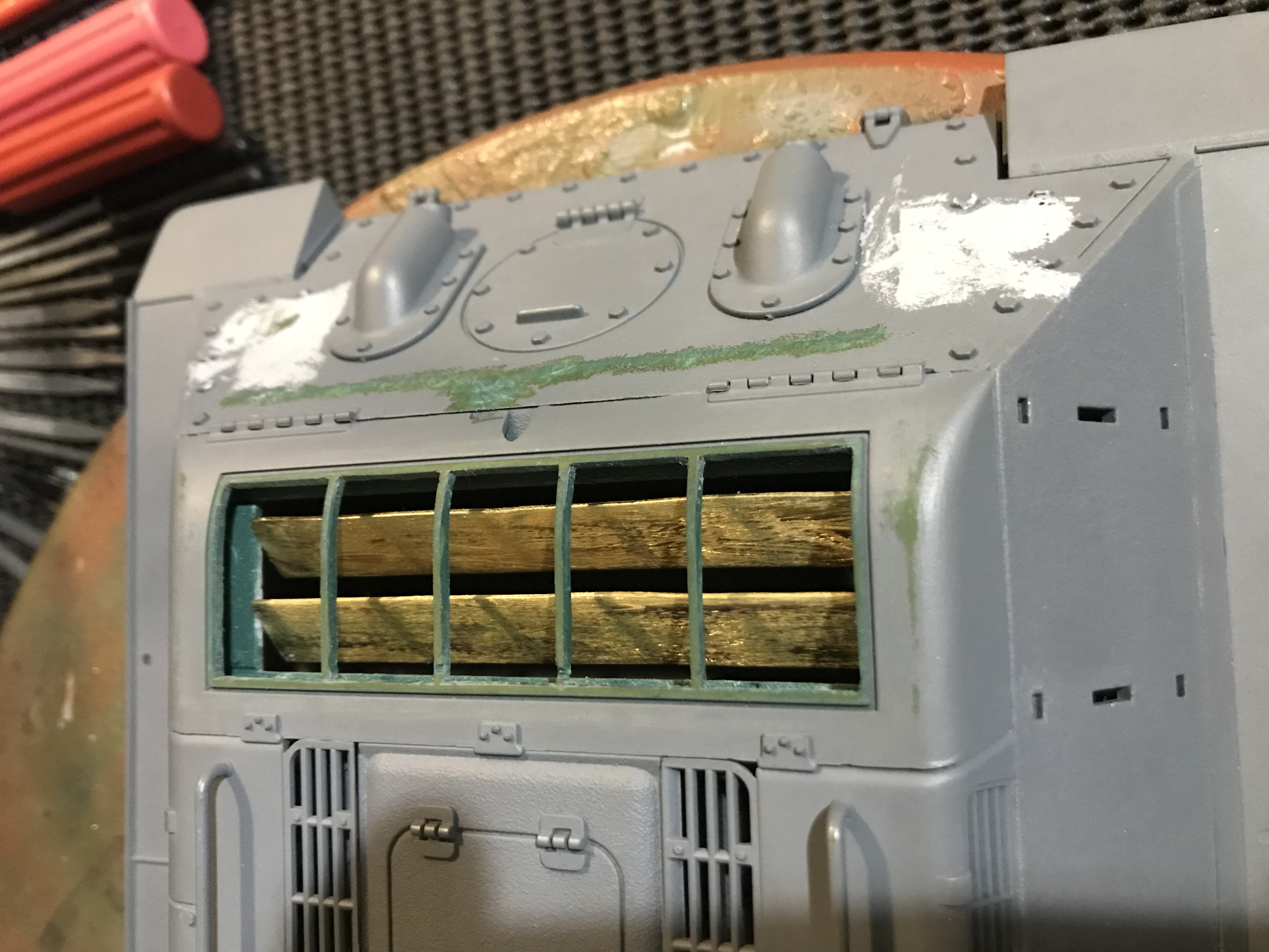 The louvers were chucked together out of scrap brass flat sheet and tube.