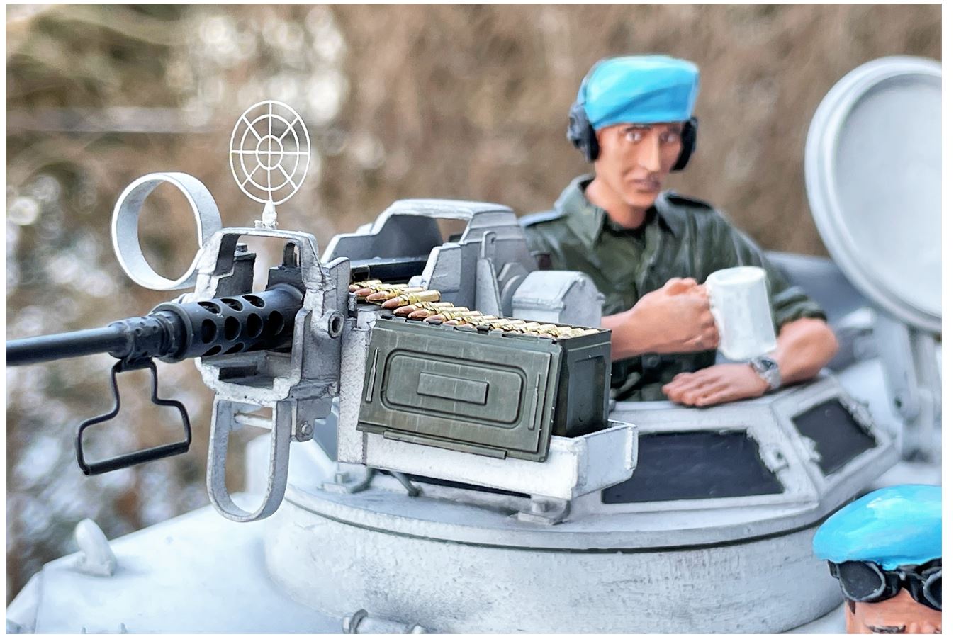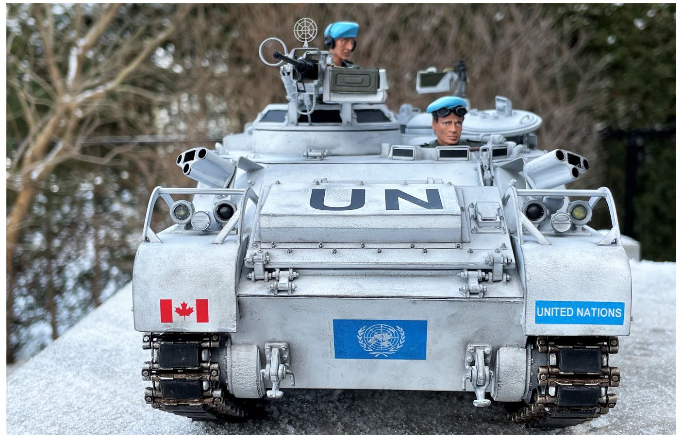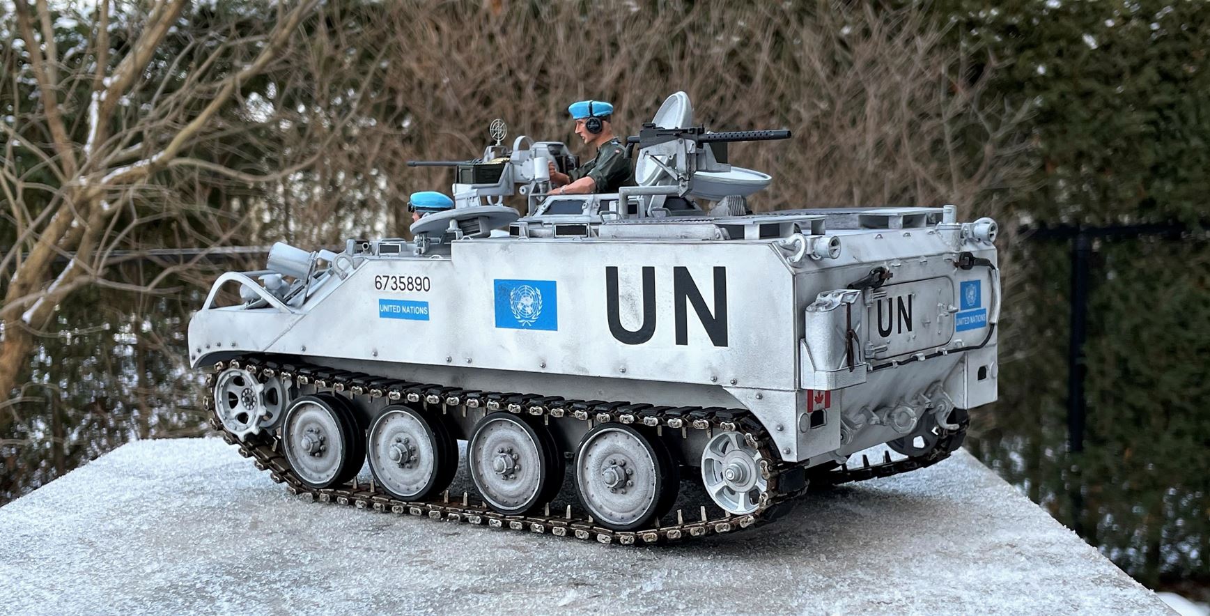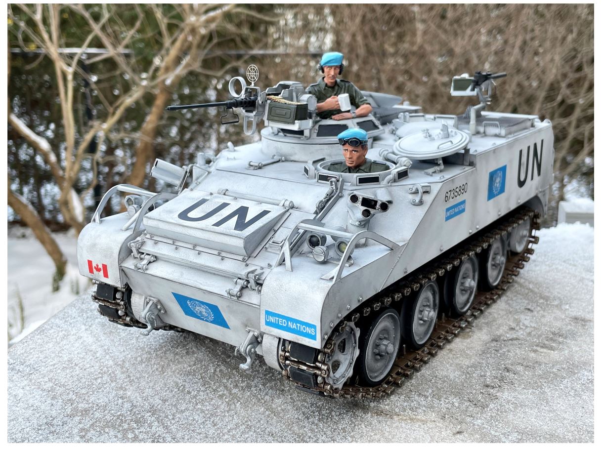 I watched the build and am glad you are putting the finished photos here, too. Apart from your usual brilliant, skillful modeling, I also appreciate your building the APC as a UN vehicle, creating something so interestingly different. Bravo! :clap: :clap: :clap:
