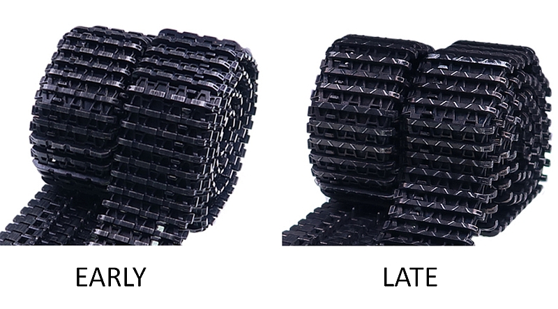 For late tracks, there is stripes on each tracks links, but does not exist on early.