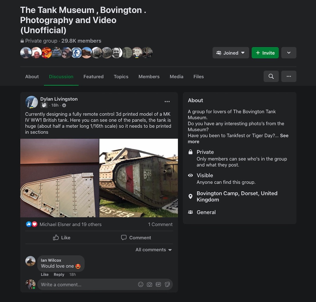 More 3DP WW1 subjects in the pipeline with news of a 1/16 Mark IV underway. No firm date yet on release but expect it will be available before Hooben's slated for June. Will an A7V, Whippet or St Chamond be far behind?