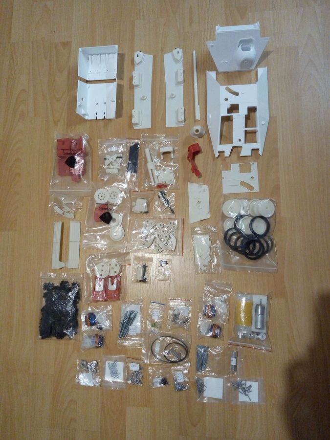 It contain 200 printed parts, 240 printed tracks links with pins and 345 pieces of various hardware.